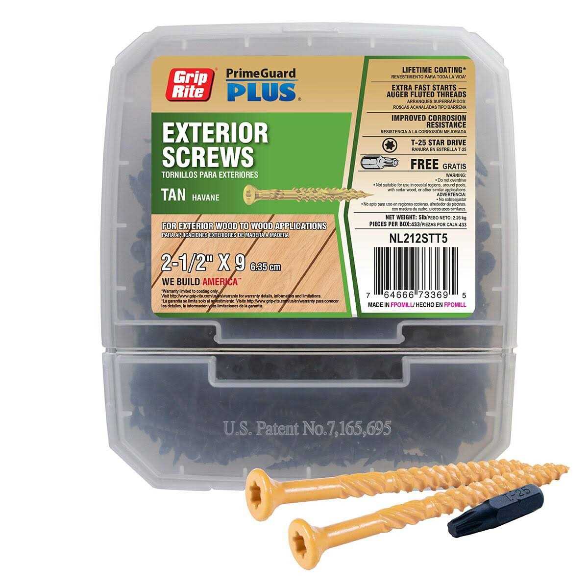Grip-Rite PrimeGuard Plus #9 x 3 in. Tan Star Wood Deck Screw L3STT5