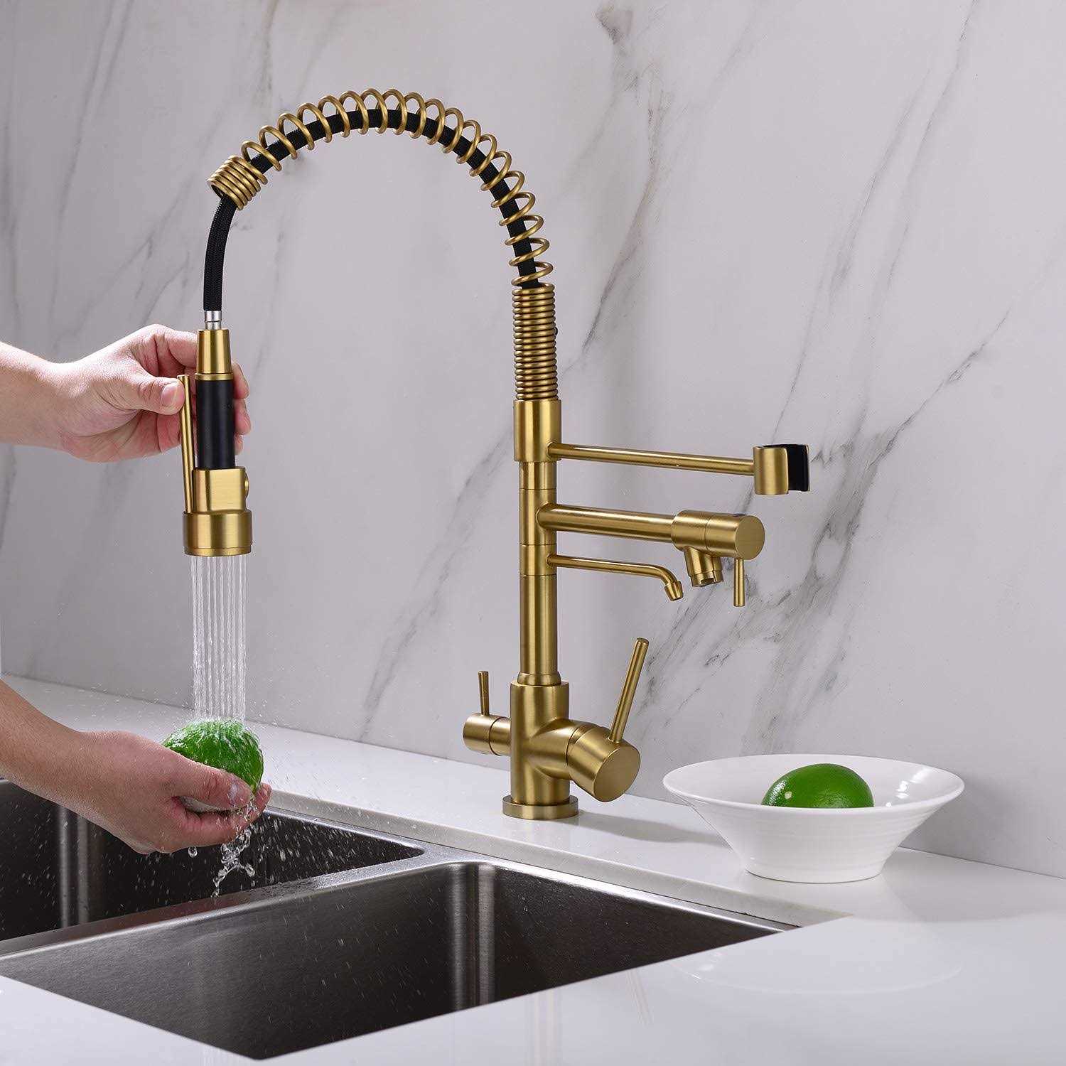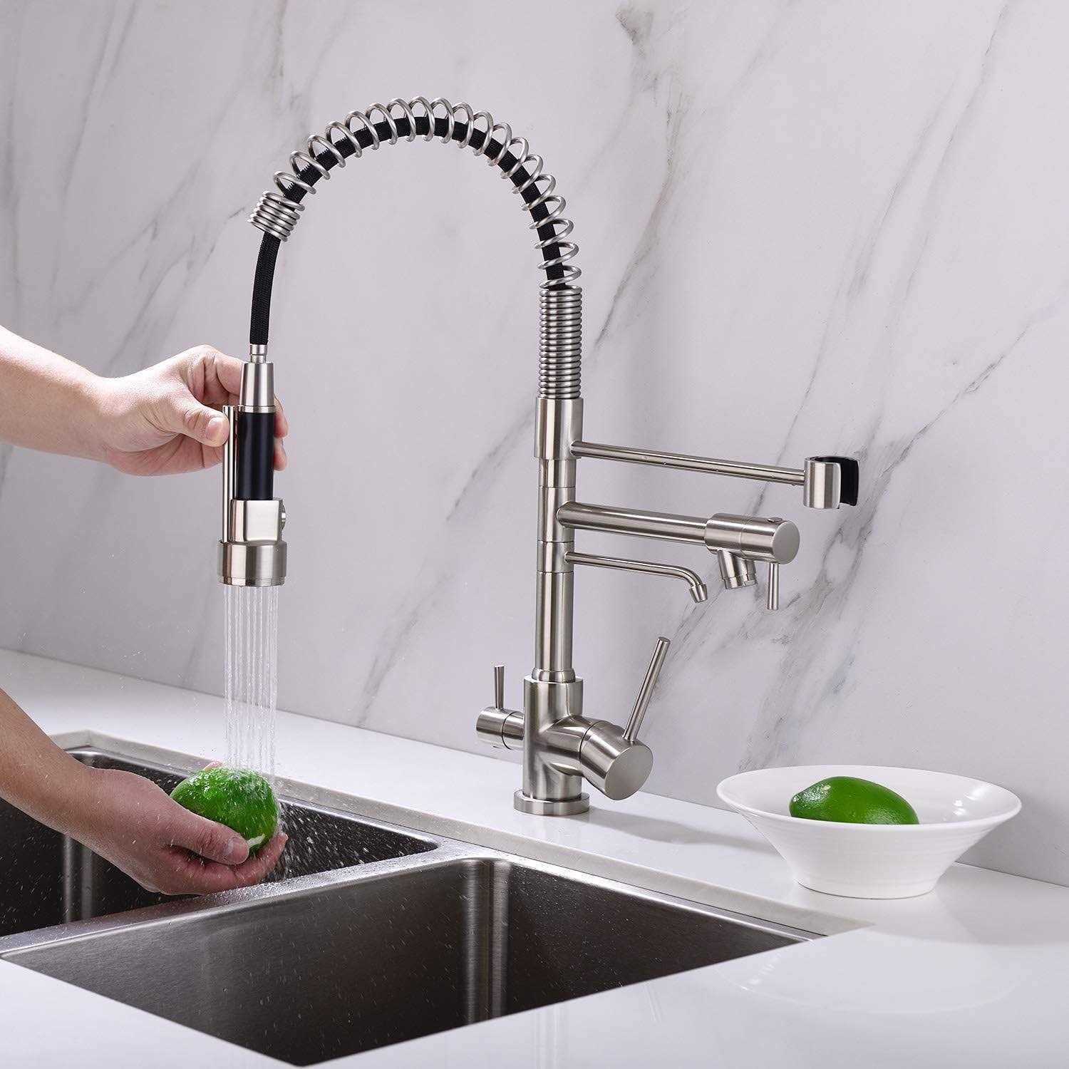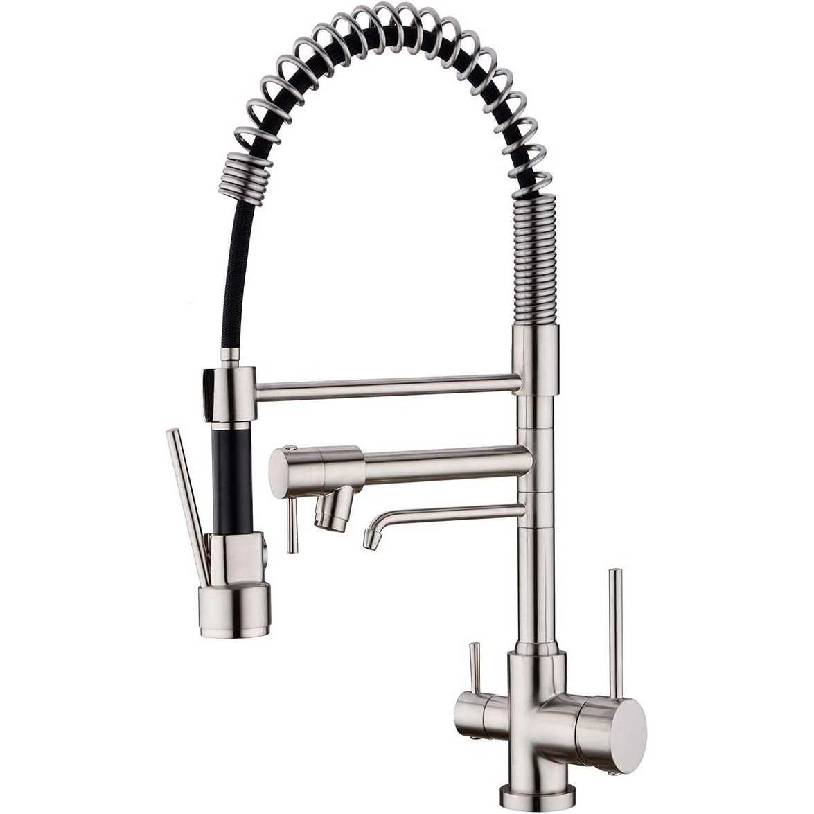 Delle Rosa Kitchen Faucet, 3 Way Drinking Water Faucet, 3 in 1 Water Purifier Faucets, High Arc and Dual Handles Commercial Kitchen Faucet Brushed