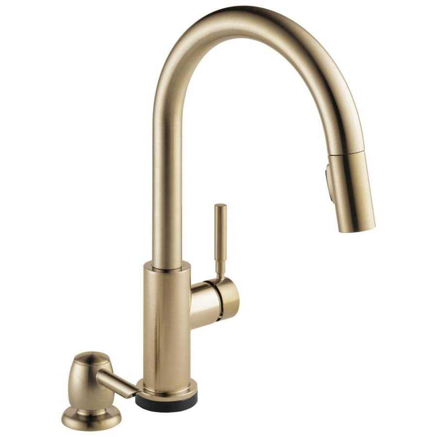 Delta Trask Champagne Bronze Single Handle Pull-down Kitchen Faucet with Deck Plate and Soap Dispenser Included | 19933-CZSD-DST
