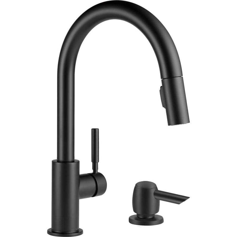 Delta Trask Matte Black Single Handle Pull-down Kitchen Faucet with Deck Plate and Soap Dispenser Included | 19933-BLSD-DST