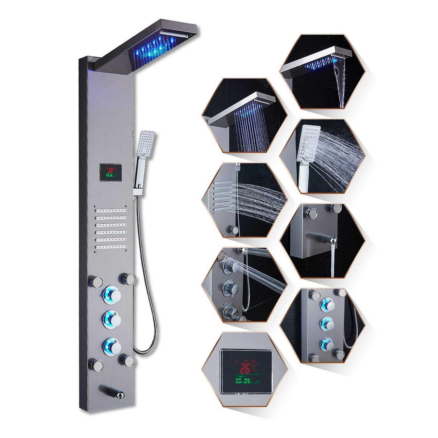 ELLO&ALLO LED Rainfall Waterfall Shower Head Rain Massage System