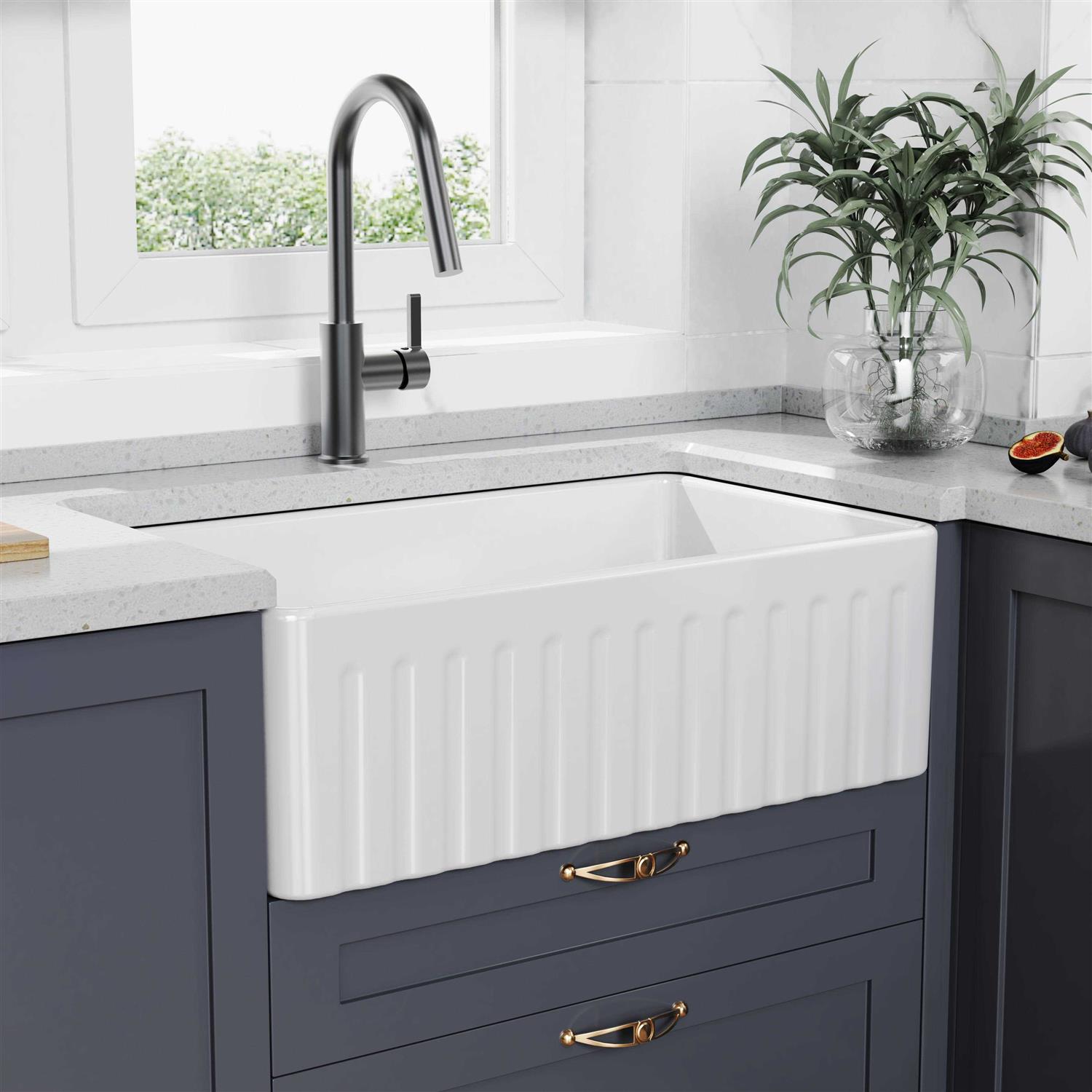 Ellai MC-20413A 30 L x 18 W Farmhouse Kitchen Sink with Accessories