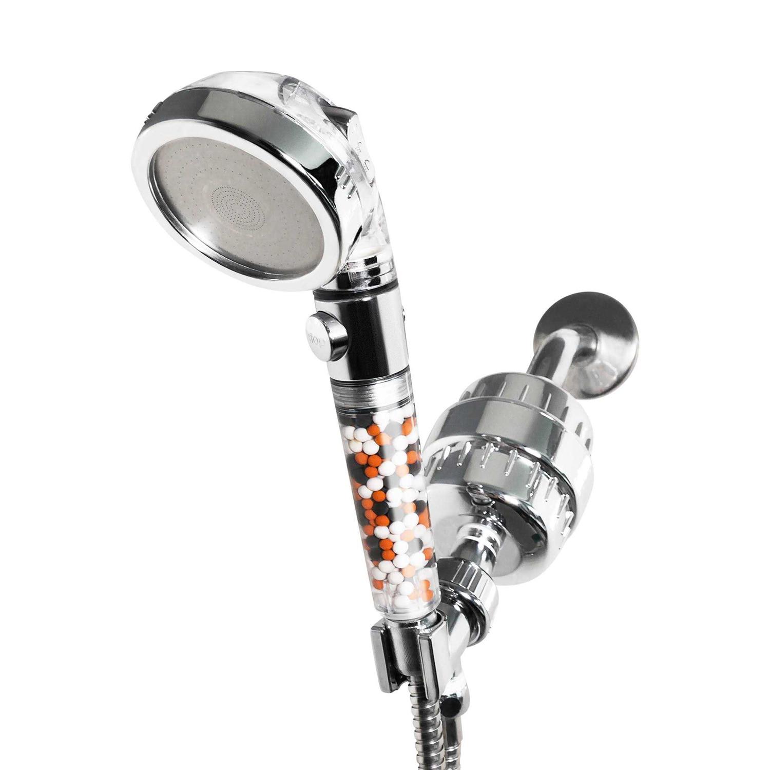 Original StoneStream Filtered Shower Head, Eco Power High Pressure Water Softener Showerhead with ON/OFF switch and Spa like Ionic beads for Dry