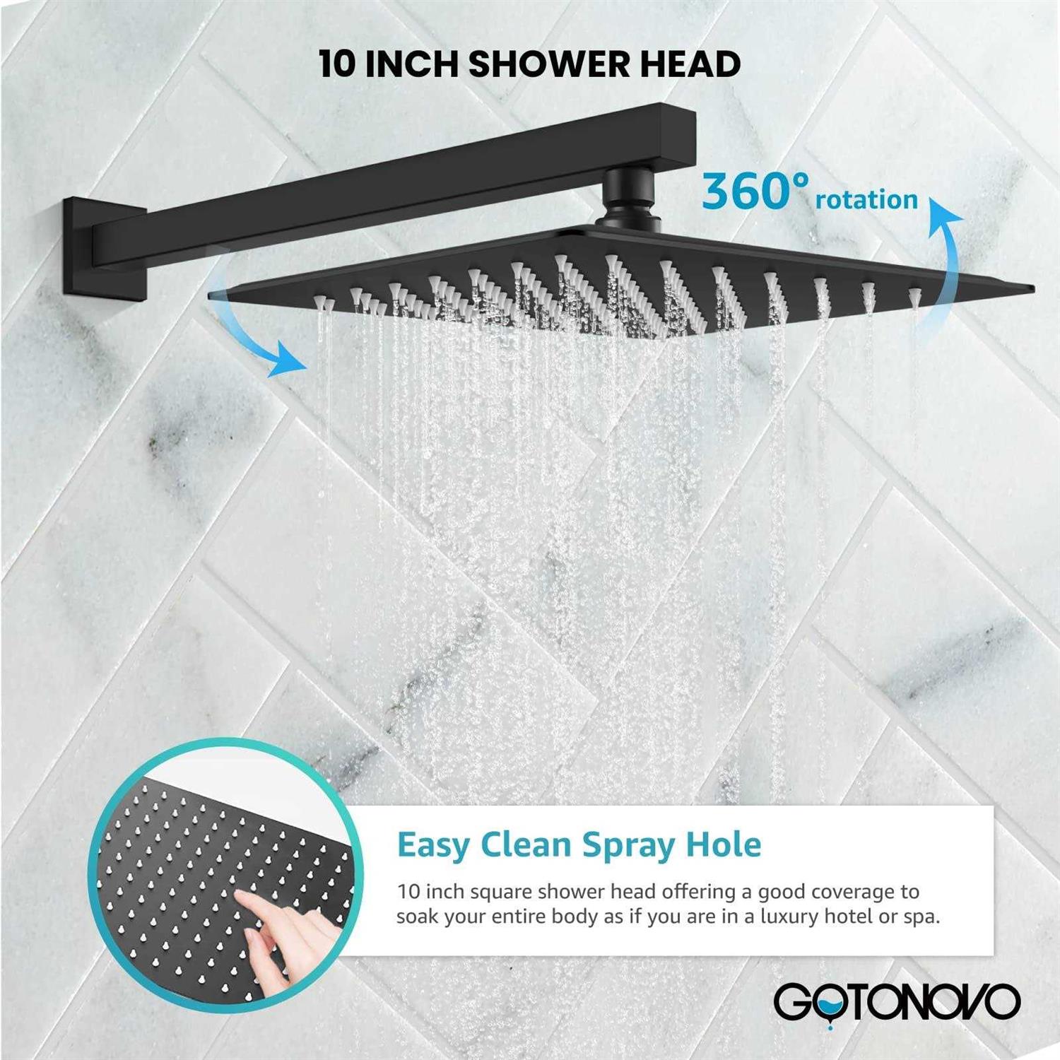 Rainfall Shower System Matte Black with High Pressure 10 inch Shower Head Hand Held Square Shower Head Bathroom Luxury Rain Mixer Shower Complete