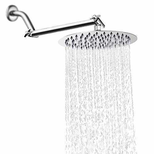 Rain Shower Head with 11” Adjustable Arm, NearMoon High Pressure Stainless Steel Rainfall Showerhead, Ultra-Thin Design – Pressure Boosting (10