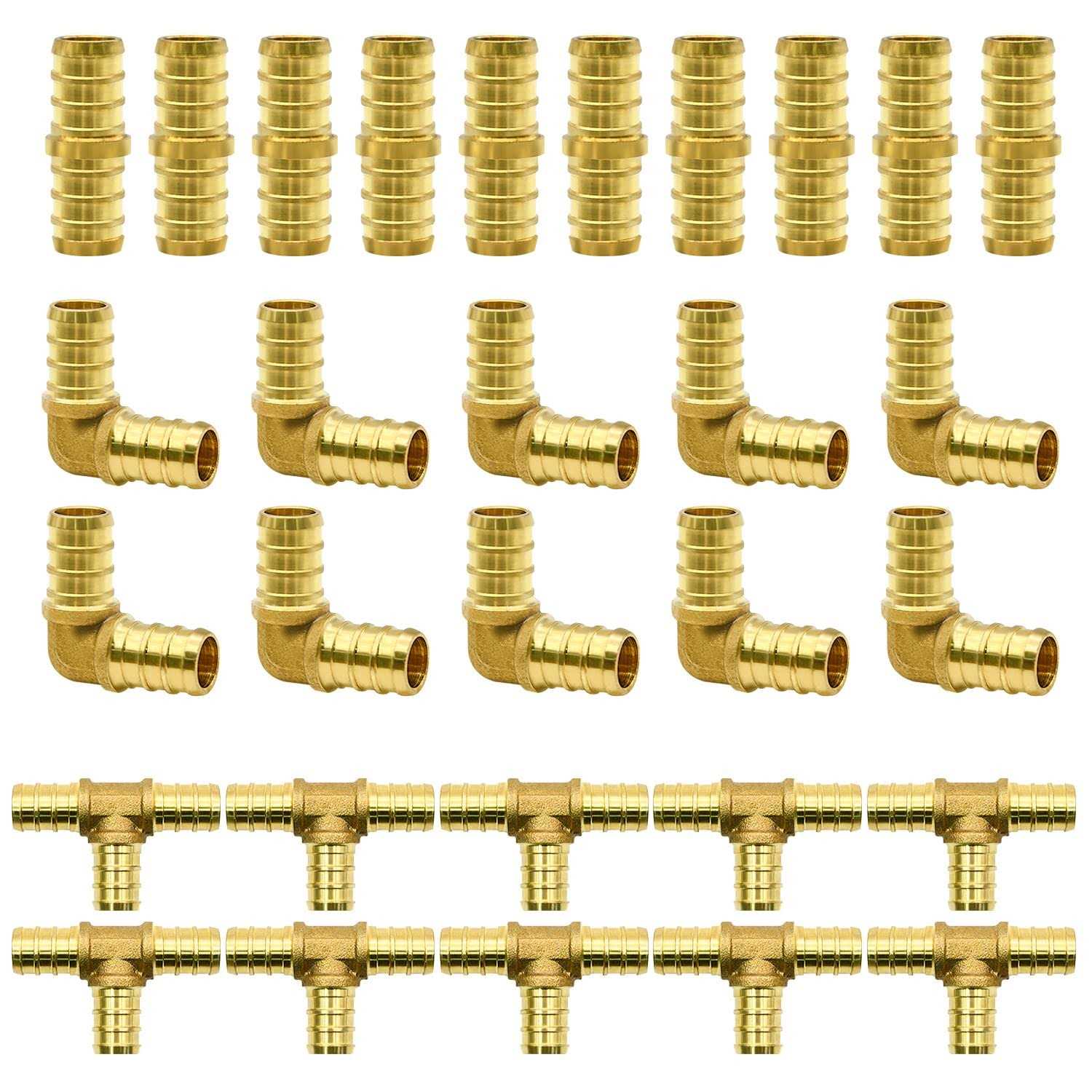 RUBYQ 15/30/45/90pcs Pex Fittings 1/2 Fittings/ 3/4 Fittings Elbow Tee Straight Couplings Set
