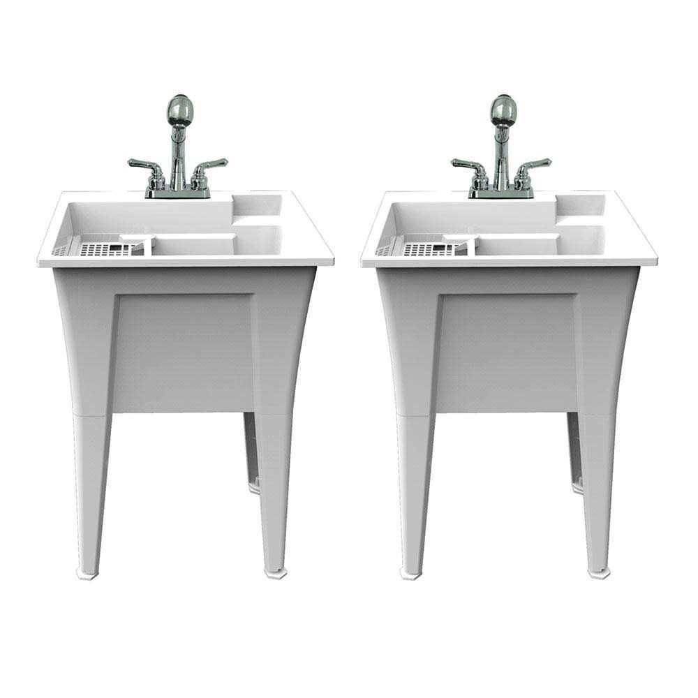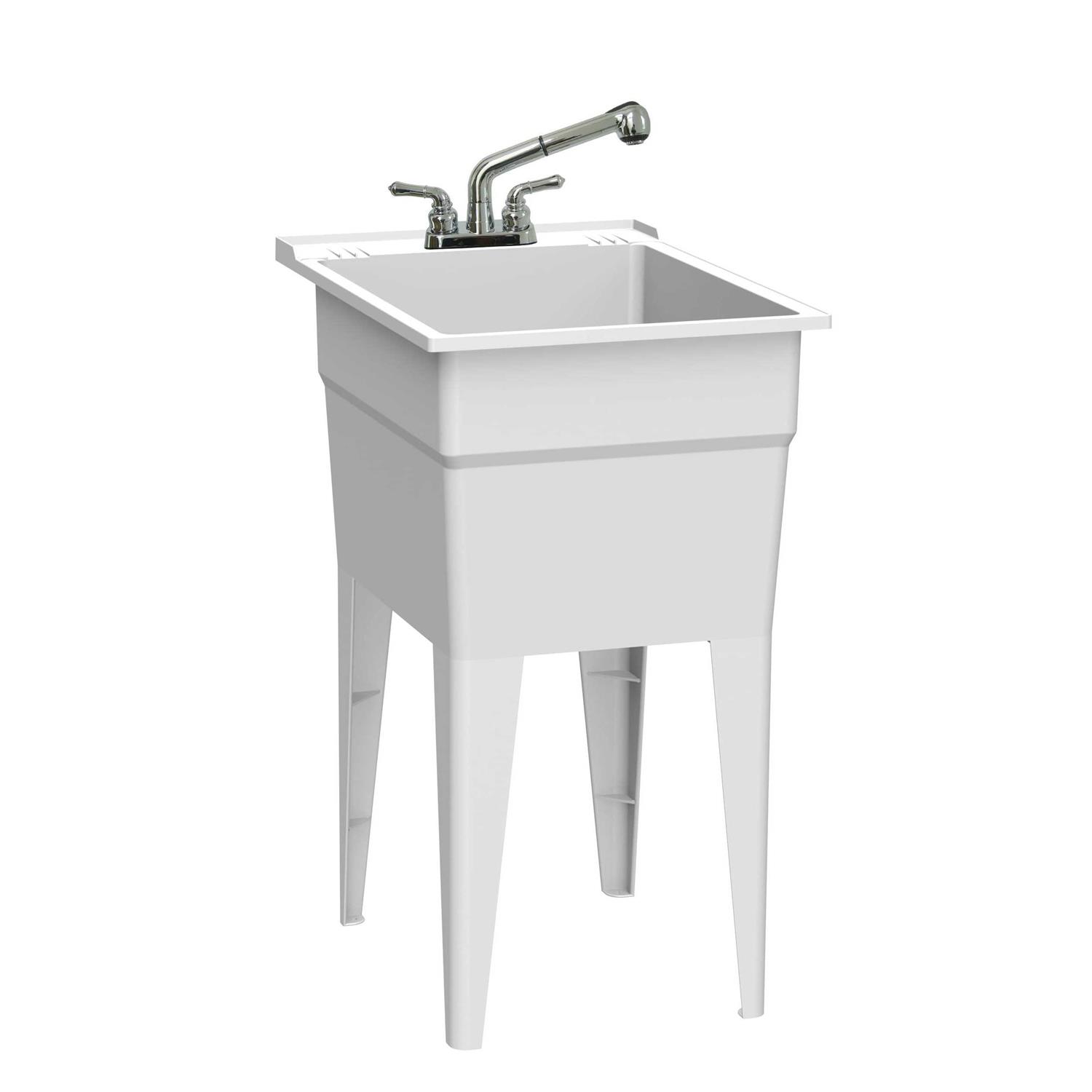 Rugged Tub 18 in. x 24 in. Polypropylene White Laundry Sink with 2 Hdl Non Metallic Pullout Faucet and Installation Kit N52WK1