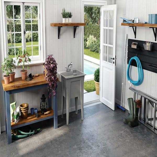 Rugged Tub 24 in. x 22 in. Polypropylene Laundry Sink with 2 Hdl Non Metallic Pullout Faucet and Installation Kit B24GK1