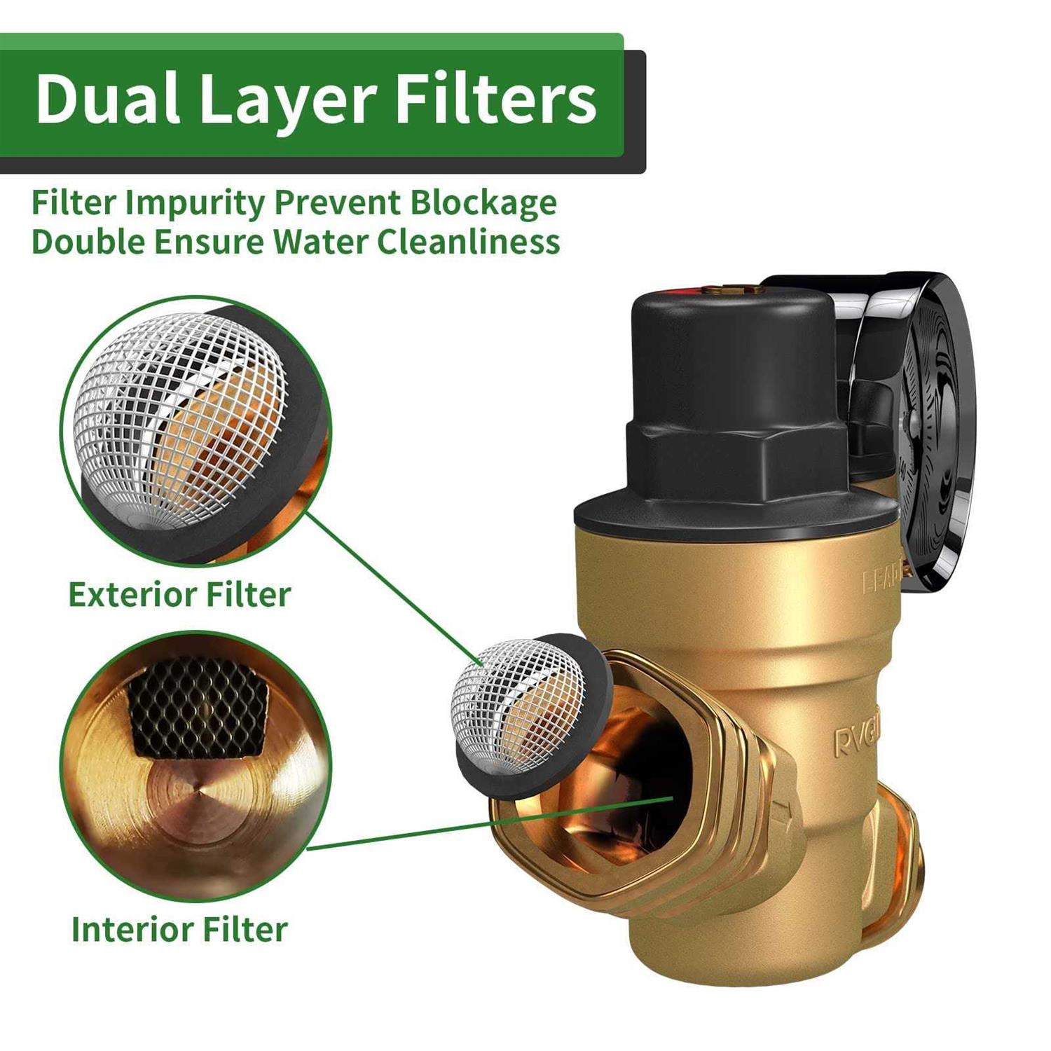 Rvguard Rv Water Pressure Regulator Valve, Brass Lead-free Adjustable Water Pressure Reducer with Gauge and Inlet Screen Filter for Rv Camper Travel