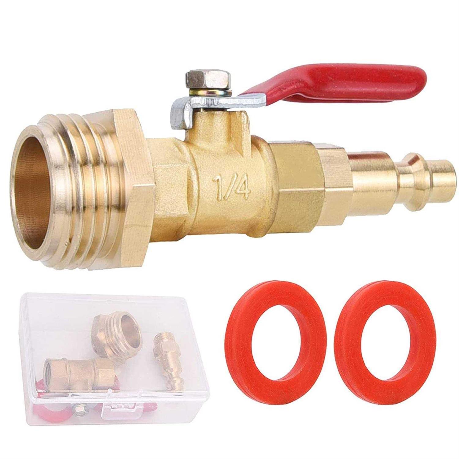 RV Winterize Blowout Adapter Kit 1/4 Male Quick Connect Plug and 3/4 Male GHT Thread, Wintering Quick Fitting with Ball Valve and 2 Pcs Washers