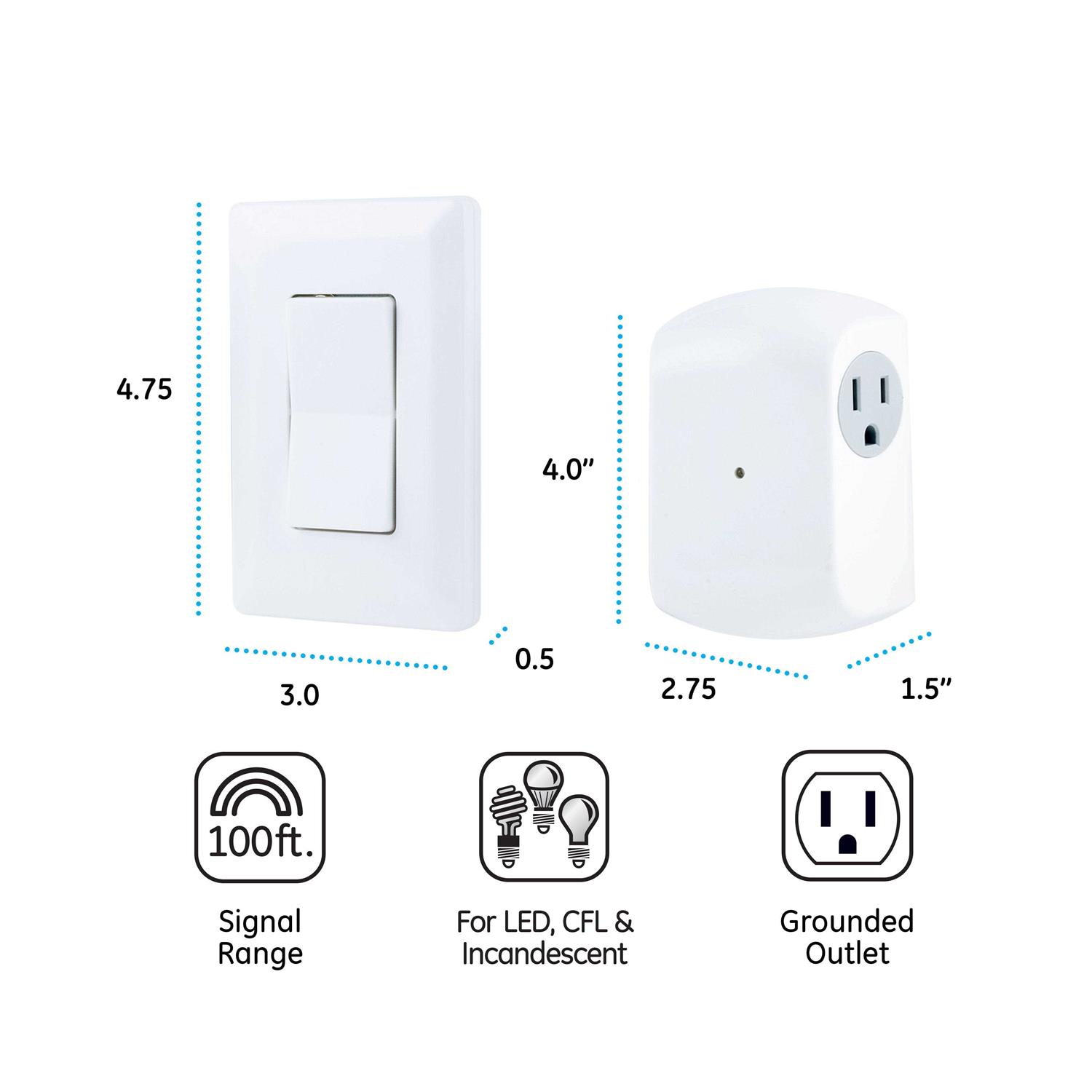 GE Wireless Light Control with Wall Switch 1-Grounded Outlet