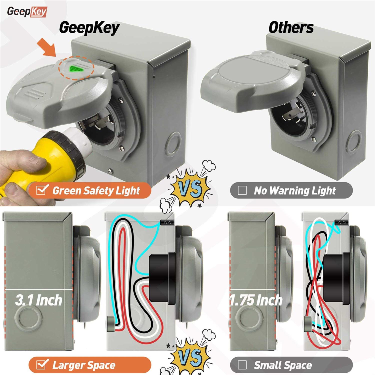 GeepKey Latest 50 Amp Generator Power Inlet Box NEMA 3R Generator Receptacle 50 Amp