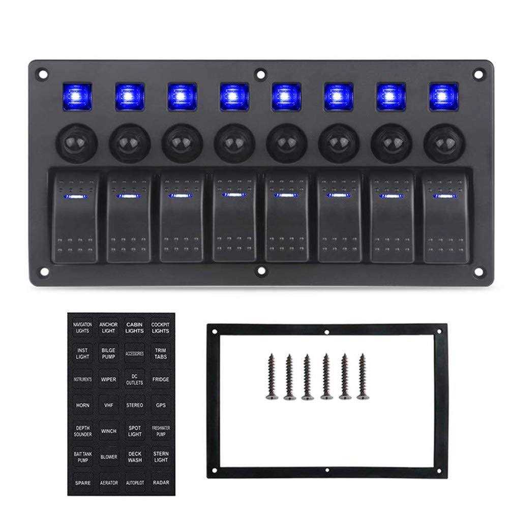 Geloo 8 Gang Marine Switch Panel Boat Rocker Switch Panel Waterproof 12v Aluminum Switch Panel