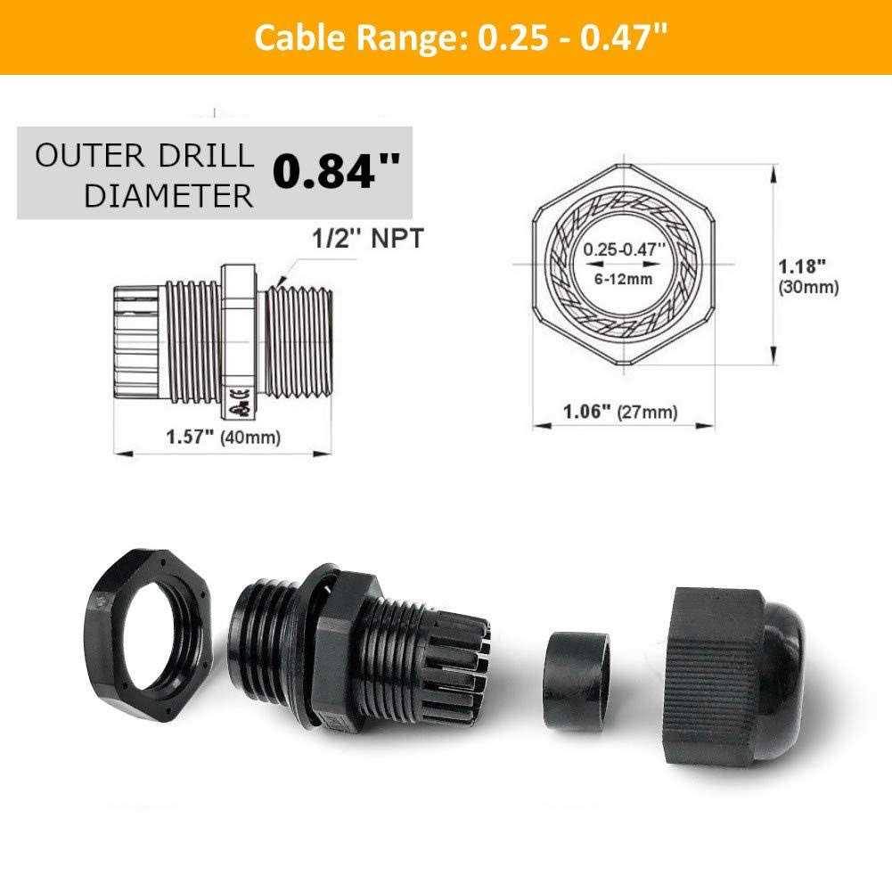 MGI SpeedWare NPT Strain Relief Nylon Cord Grip Cable Glands