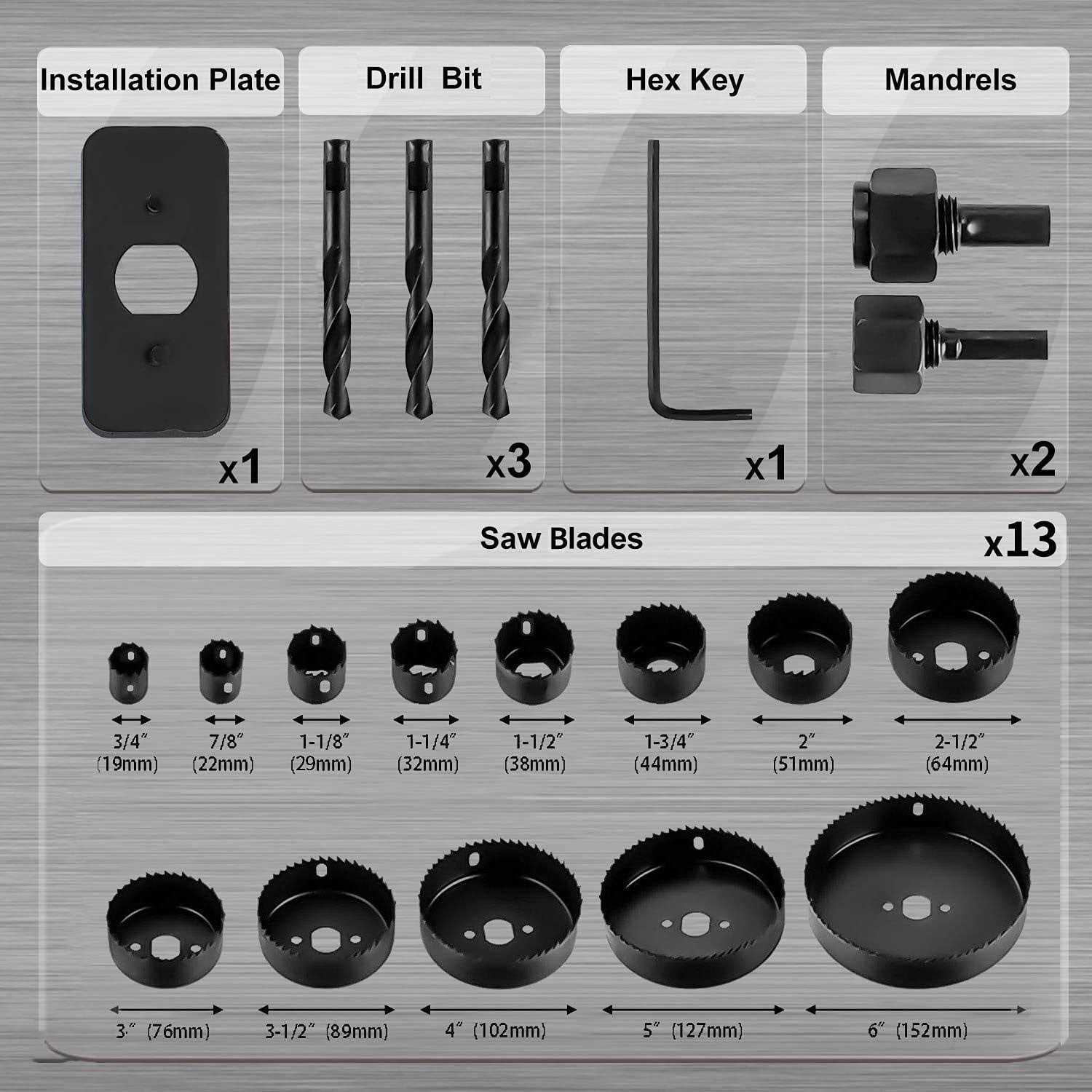 Kata 20pcs Hole Saw Kit Hole Saw Set with 34-6,Maxsize 6 inch Hole Drill Bit,Ideal For Soft Wood,Plywood,Drywall,Pvc C