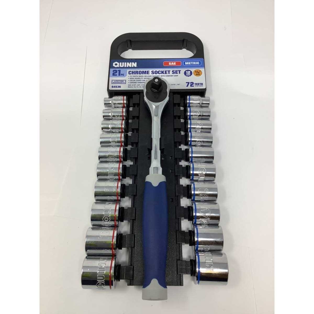 Quinn 3/8 in. Drive SAE and Metric Chrome Socket and Ratchet Set