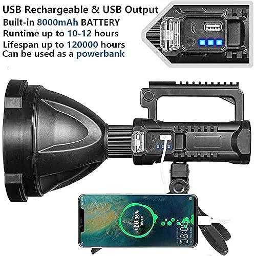 Rechargeable Spotlight Super Bright 150000 Lumens Led Spot Lights Flashlight 8000 mAh Large Handheld Searchlight Long Lasting for Outdoor Hunting