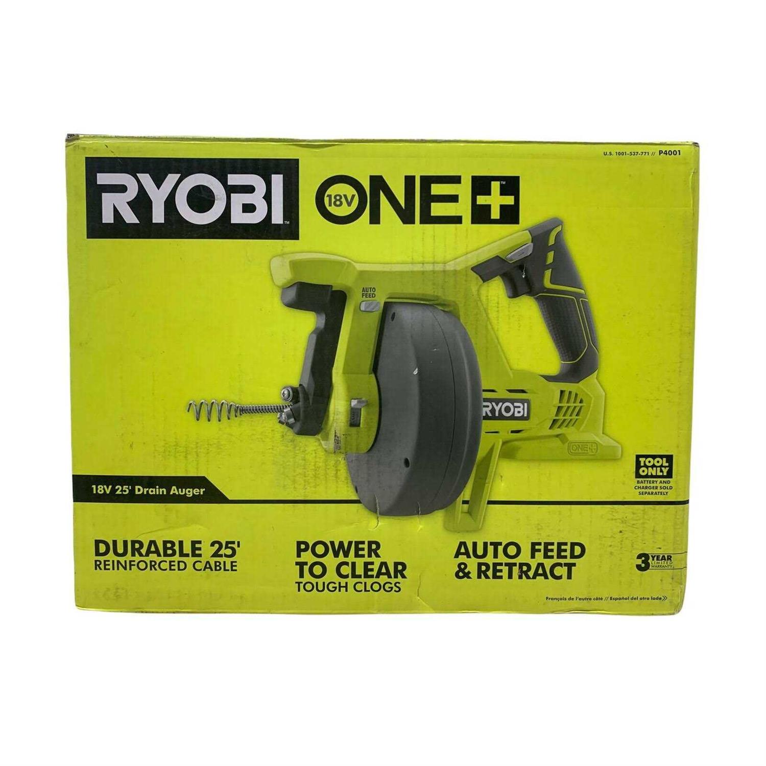 RYOBI ONE+ 18V Hybrid Drain Auger Kit with 50 ft. Cable, 2.0 Ah Battery, 18V Charger and Cutter Tips