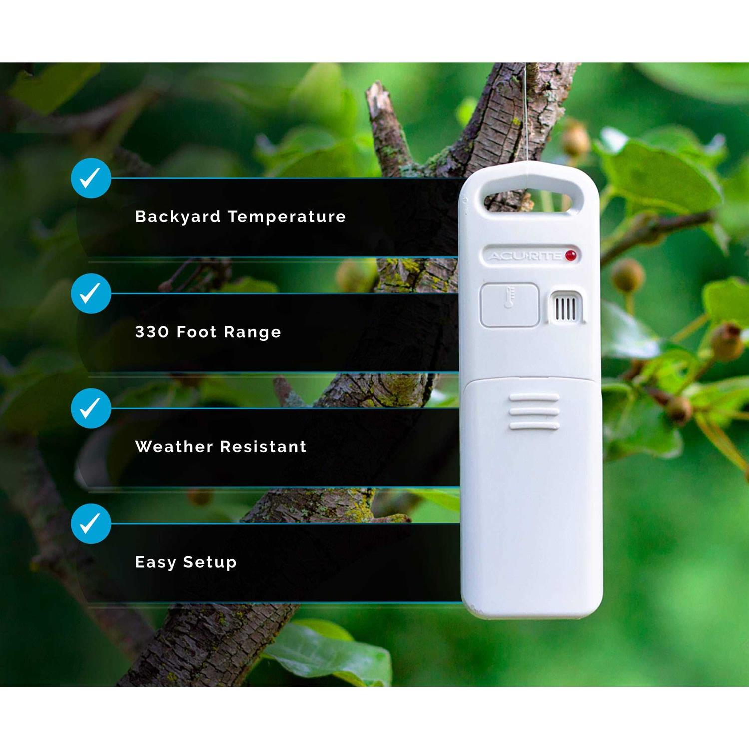 Weather the day with confidence with your own weather and weather prediction information, offering pinpoint accuracy right from your own backyard. This weather station uses patented Self-Calibrating Technology to provide your personal forecast of 12 to 24 hour weather conditions. Self-Calibrating Forecasting is generated from weather data measured by a sensor in your yard, giving you the most accurate forecast available for your exact location. The bold, easy to read LCD screen includes indoor/outdoor temperature with daily high/low readings, and an atomic clock and calendar. Atomic clock and calendar are radio-controlled to maintain the correct time and date with split-second precision, and automatically adjust for daylight saving time (DST). Display stands upright for tabletop use or is wall-mountable. The outdoor sensor features powerful wireless technology, low battery indicator light, and an integrated hanger for easy mounting. Weather station display is powered by 3 AA alkaline batteries (not included). Wireless sensor is powered by 2 AA alkaline or lithium batteries (not included). Lithium batteries recommended for use in outdoor sensor for temperatures below 4 degrees Fahrenheit (-20 degrees Celsius). It’s more than accurate, it’s AcuRite.