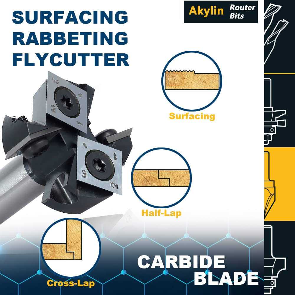 SLAB FLATTENING ROUTER BIT: Shank: 1/2″ inch, Cutting Diameter: 1-1/2″, Carbide Blade: 12*12*1.5mm, more durable than ordinary blades, not easy to damage. Max R.P.M is 12000. HIGH QUALITY: the spoilboard surfacing router bit body adopts super-strength tungsten steel body, anti-recoil design, no deformation and bending during use; the blade is made of unique carbide material, higher cutting efficiency and faster material removal process. HIGH EFFICIENCY: This professional slab flattening router bit features unique 2+2 insert knife design, that contains two cutting flutes and two up-shear scorers, which provide a smoother finish at the bottom of the cut than traditional two-knife style router bits APPLICABLE EQUIPMENT: The slab flattening router bit used for CNC and other automatic routers as well as handheld and desktop portable routers, such as woodworking engraving machines, edge trimmers, etc. WIDE USE: Suitable for planing, trimming or grooving work on the top surface of tail boards, such as fiberboard, plywood, laminate, MDF, particleboard, balsa core, soft and hard wood, high density polyurethane (HDU board), acrylic, etc. Akylin Slab Flattening Router Bit 1/2 Shank – CNC Spoilboard Surfacing Router Bit – Carbide Insert Router Planer Bit – 1-1/2″ Cutting Diameter Planing Bit for Woodworking Safety Instructions: Designed for planing & rabbeting the following materials:· MDF Plywood/Chipboard* Plastic/Acrylic/Fiberboard . Balsa Core/High Density Urethane (HDU Board)/HDF/LDF Epoxy (Epoxy Resins)/Ultra-High Molecular/WeightHardwood/Softwood/Polyethylene (UHMWPE) For optimal results and maximum insert life, replace inserts with optional general purpose knives. Recommendations: For surfacing solid woods it is recommended to removeboth bottom scorers. Please wear good protective measures and always wear eye protection. Do not wear gloves to avoid hazard of getting caught in the tool and pulling your hand in to get mangled during bit spinning Examine the bits before use for cracks or chips. Do not use damaged or bull bits. slab flattening router bit, surfacing router bit, router planer bit, spoilboard surfacing router bit, cnc spoilboard surfacing router bit
