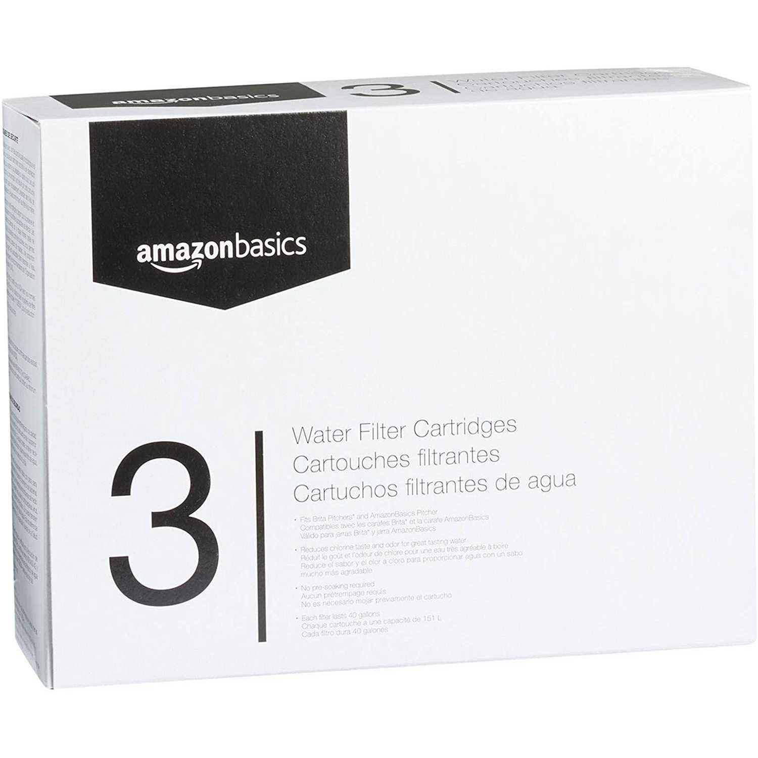 Amazon Basics Replacement Water Filters for Pitchers, Compatible with Brita, 3-Pack