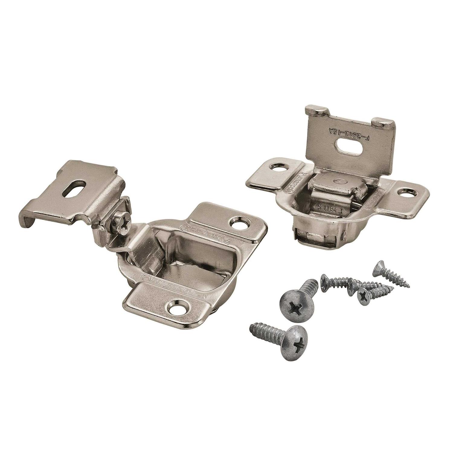 Every hinge series is tested for durability in conditions exceeding all KCMA certification requirements and BHMS standards for cycle life, strength and finish quality. Nickel is a cool, smooth silver-toned finish that is timeless and subtle. markets decorative hardware solutions that inspire, coordinate and help express personal style. For the kitchen, bathroom and the rest of the home, with a variety of finishes and designs for all decorating tastes, is the ultimate, time-tested source for hardware needs. Individually bagged with pads and screws. 2-way independent adjustability. Compact design with low protrusion into cabinet opening. Stay open feature. Designed and tested to exceed KCMA and BHMA standards.