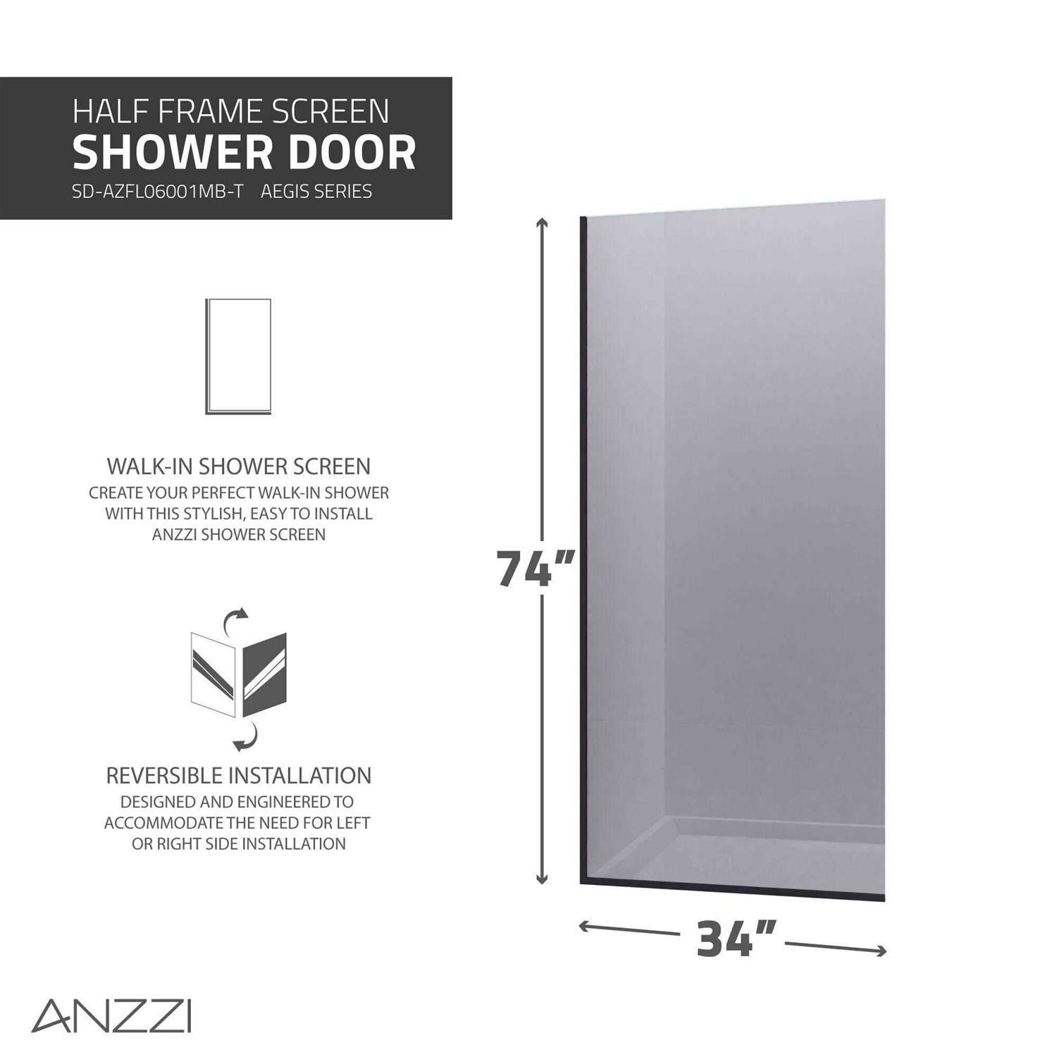 ANZZI Veil Series 74 in. by 34 in. Framed Glass Shower Screen in Matte