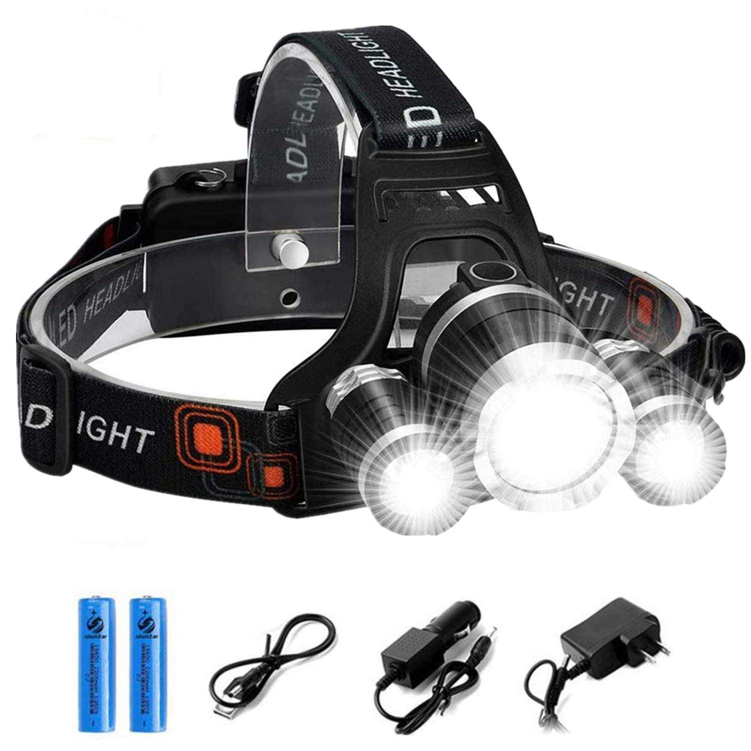 AUERVO Rechargeable LED HEADLAMP, 10000 Lumens Bright Headlight, Portable Waterproof Flashlight Kit with Rechargeable Batteries for Night Hunting