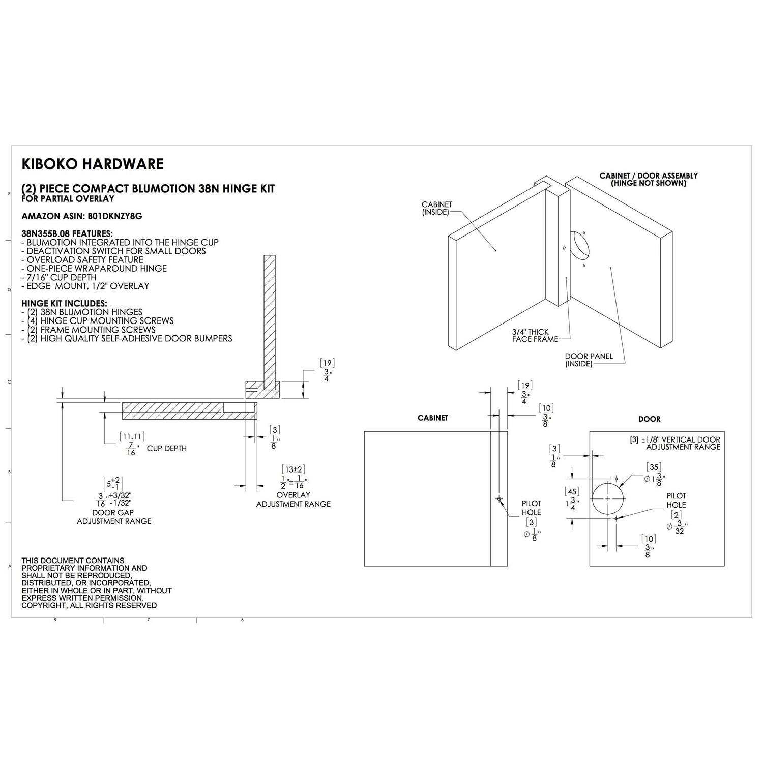 Blum 1/2 Overlay Compact 38N Built in Soft-close with otion Hinge