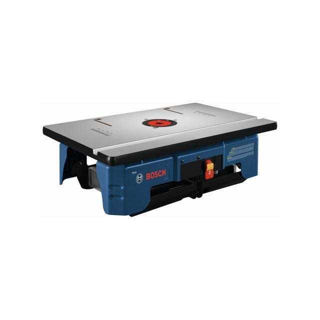 Features Features Ultra-portable design features folding legs for fast setup and easy storage Easy Click router mounting system provides easy bit changes and no leveling Laminated MDF top helps users make smooth and precise cuts. Specifications SKU RA1141. Brand Bosch Amperage 15 Volts. 120V. Dust Collection Yes. Max Fence Opening 3-5/8 in. Max Throat Opening 3-1/4 in. Working Length 26 in. Power Corded Length 16.5 in. Width 26 in. Height 14.5 in. Weight 33 lbs.