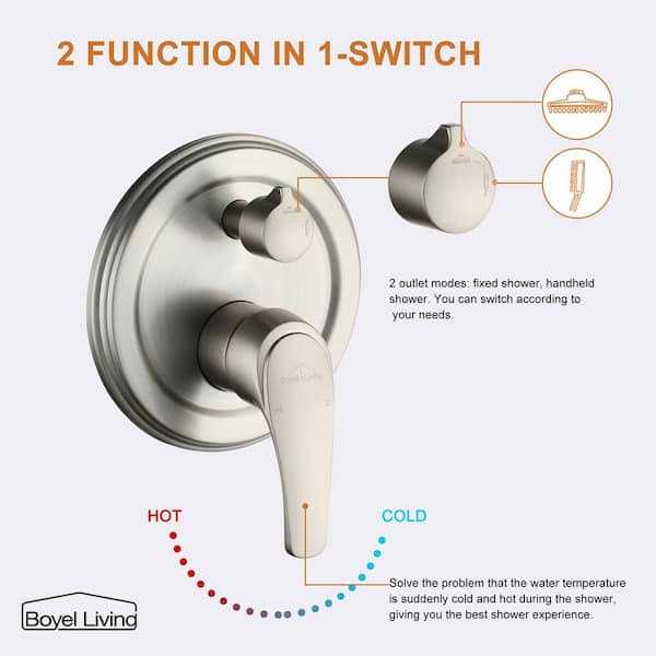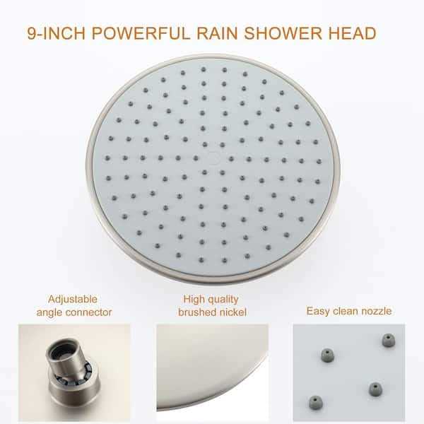 Bring the spa into your home with the Boyel Living Wall Mounted Complete Shower System in Brushed Nickel. This modern shower system features a simple and chic round shape, and it’s functional and practical. It provides a steady, powerful shower with air energy technology, and it has a 360-degree rotating connection ball with soft sprinkling. You can adjust the angle of the nozzle at will, about 15 degrees of angle slope, so you can have a variety of showering experiences. The shower system also has 5 spray modes to fully meet your different showering needs, and it provides you with the most comfortable showering experience.