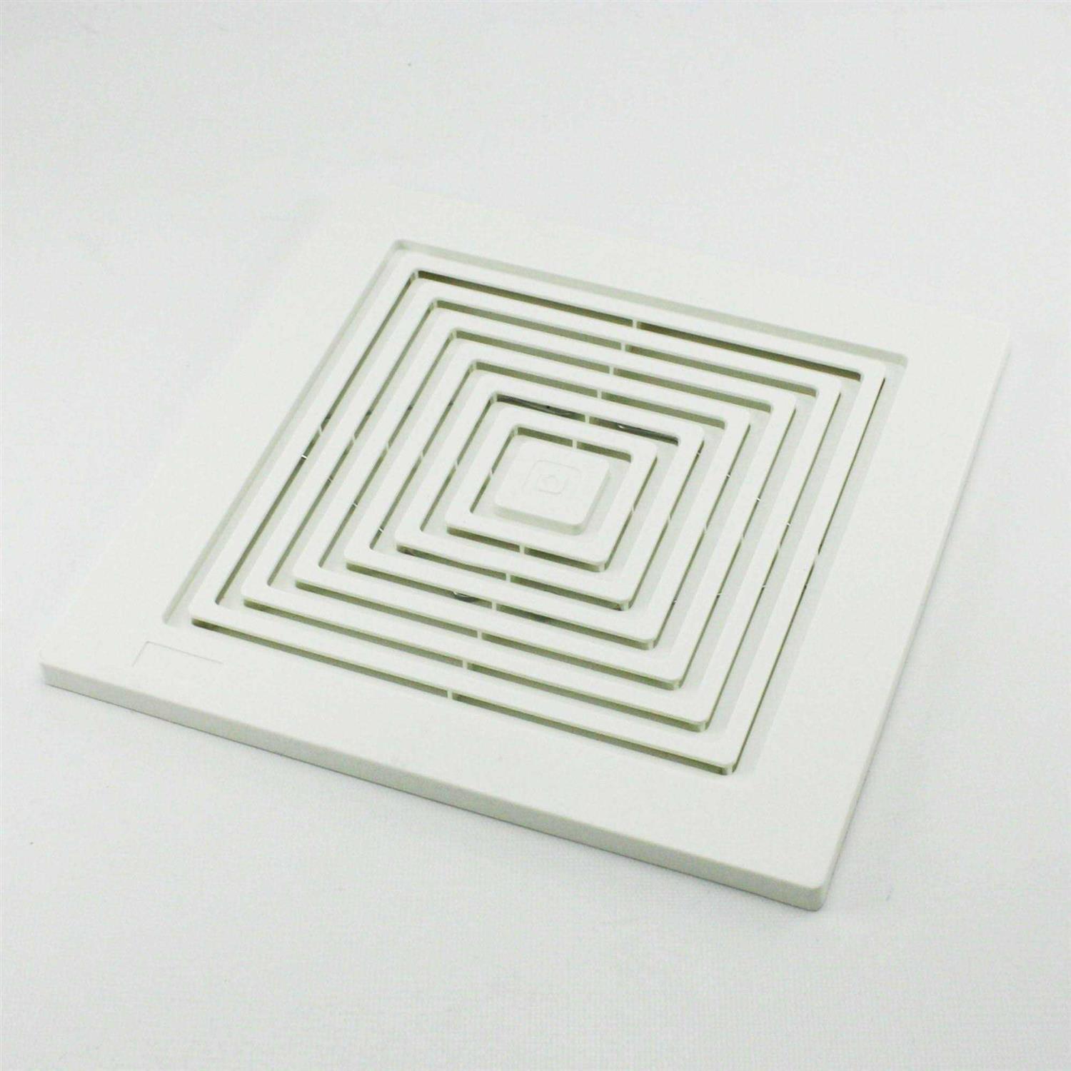 9″ x 9-1/4″. This is an OEM sourced replacement part designed for use with Broan ventilation fans. To replace this part simply remove the grille by pulling it down two inches. Reach behind the grille and squeeze the mounting springs to remove the grille. This grille is made out of plastic, it includes the springs that hold that part to the frame. This Grill is used in Ventilations.