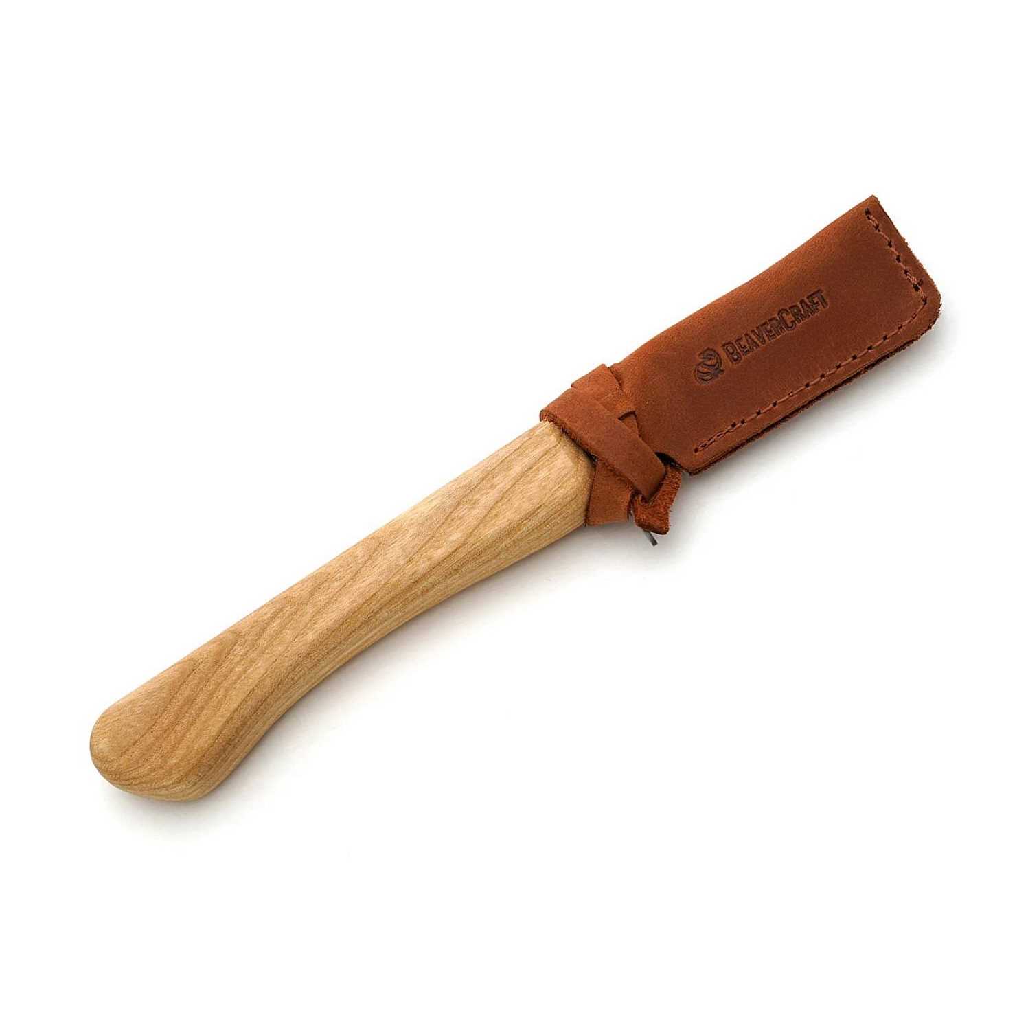 BeaverCrafts C1kid is a craft knife that has been adapted to be safer for children by having a round tip and paring bar so that the hand does not slide down the edge. Leather sheath included. BeaverCrafts carving knife is made of high quality carbon steel, after rough grinding each knife is manually honed for precise angle and sharpness of the tool. Fits both right and left handed. The handle is made of ash wood and treated with linseed oil. Blade length – 50 mm (2.16 inches) Length – 155 mm (6.10 inches) Handle – 105 mm (4.13 inches) BeaverCraft is a Ukrainian manufacturer of high quality woodworking tools. Three pillars of quality, durability and reasonable price. Many parts of the production are done by hand and this more familial hands-on production gives significantly more soul to the tools. Incredibly affordable tools for this quality.
