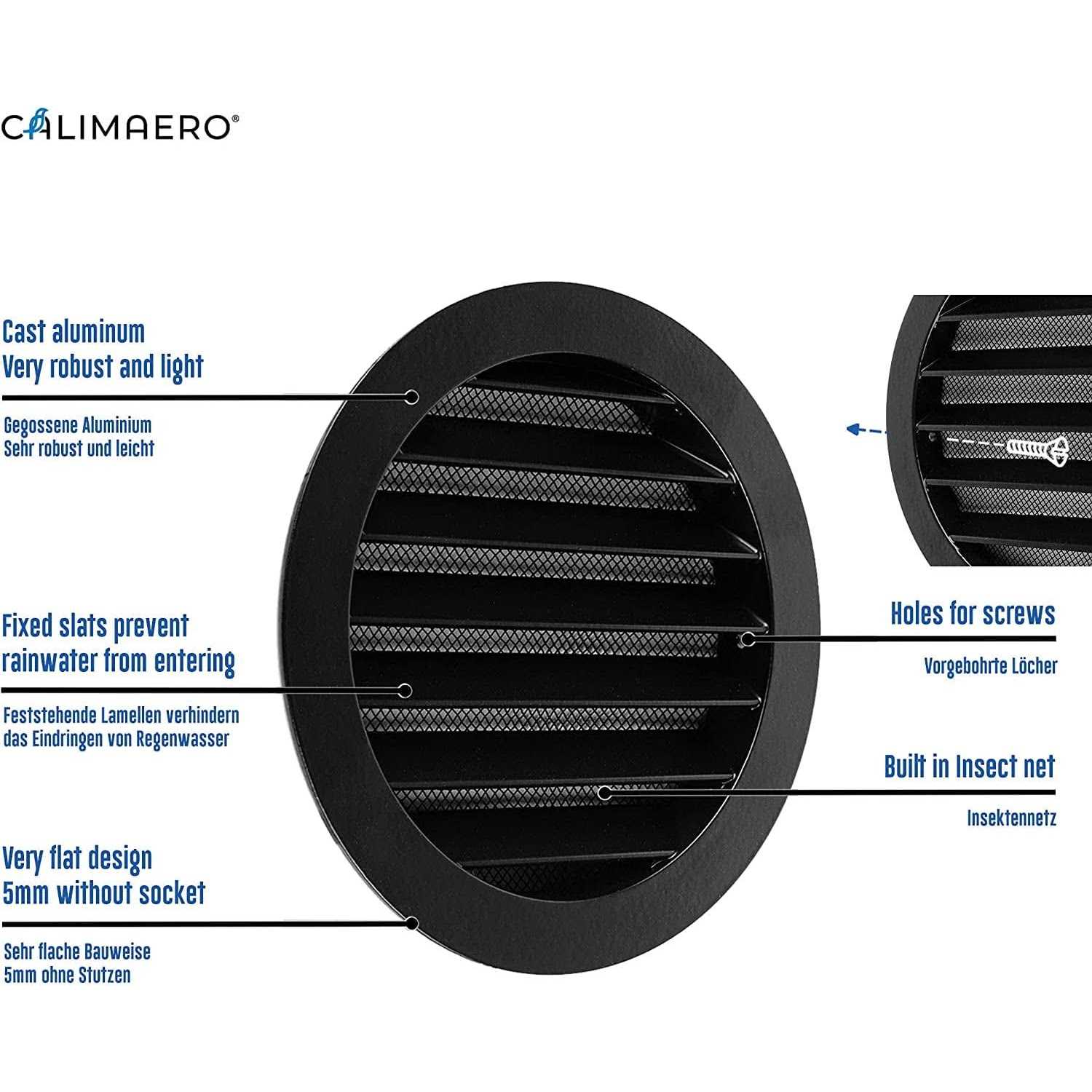calimaero WSGB Soffit Vent Black Round Grille Aluminum Vent Cover with Built-in Insect Screen Mesh