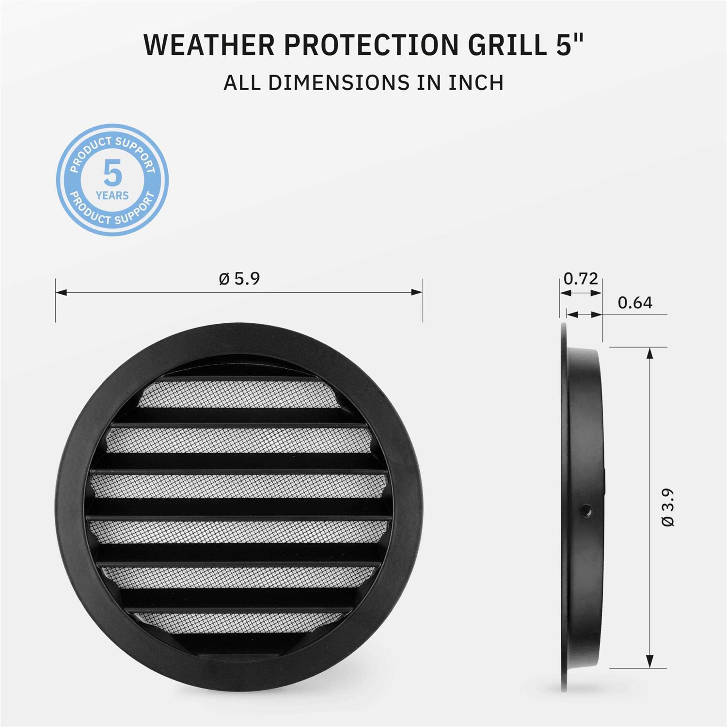 calimaero WSGB 5″ inch Black Round Metal Air Vent Grill Cover Flat Louver with Fly Screen