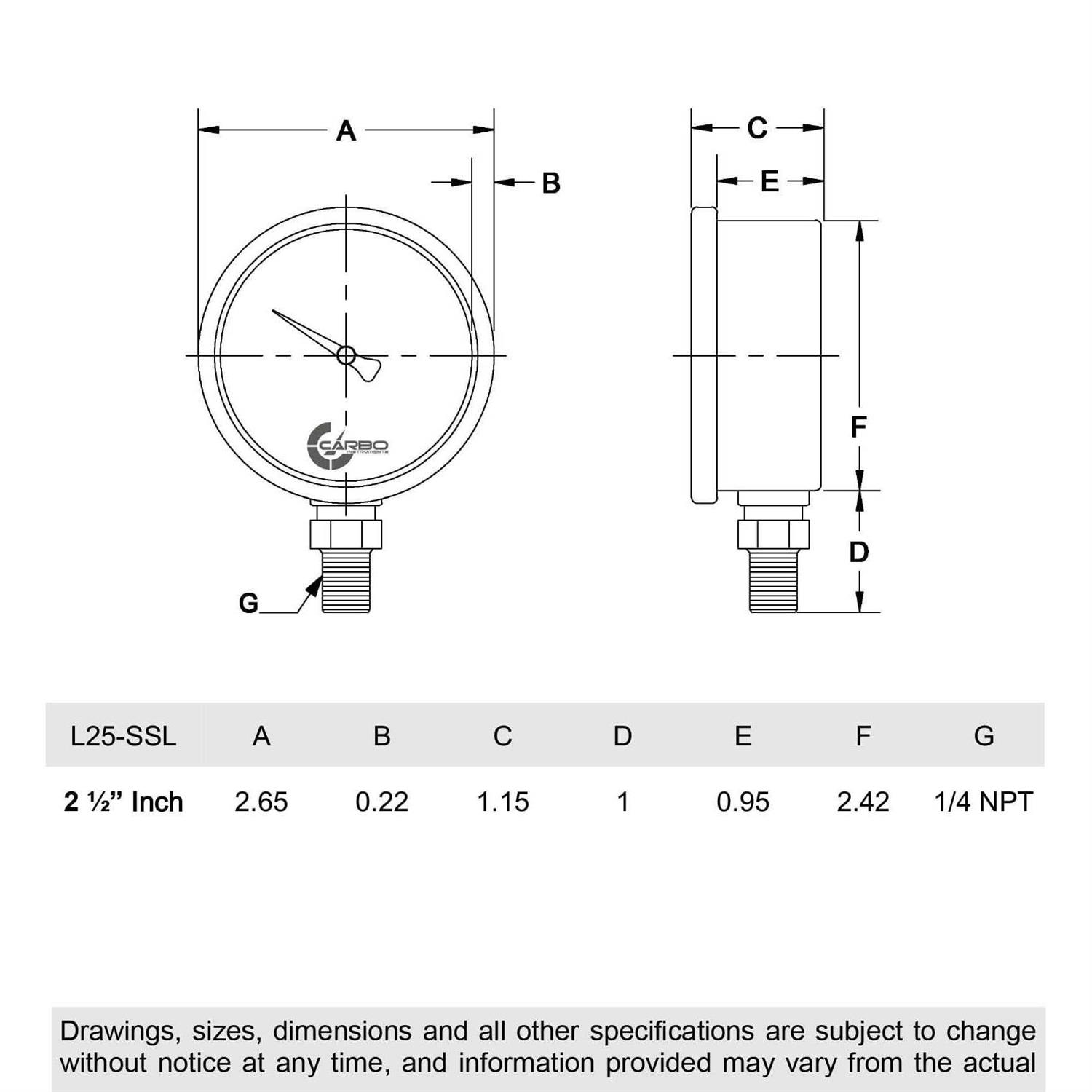 Carbo Instruments 2 1/2″ Pressure Gauge, Stainless Steel