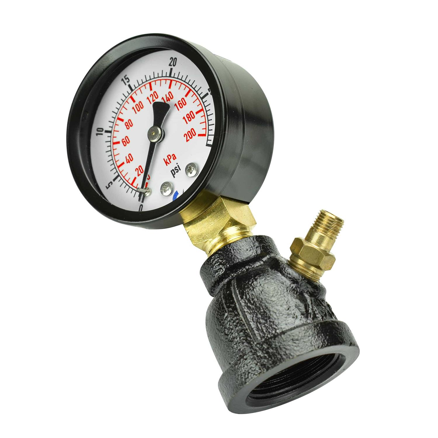 Brass Valve, Sturdy Steel Gauge Case, Forged Steel Body EASY TO Read 2″ Pressure Gauge, Durable Glass Lens Non Fading Dual Scale: psi / kPa Burdon tube type This pressure test gauge and valve body assembly is intended for pressure measuring in the gas line or tank. Dial size : 2″ Connection : 3/4″ NPT female, gas test body in Black Stee Bell Shape Gauge case : Black steel case and bezel Bourdon tube : Copper alloy Dial and Pointer : Aluminum, Window : Glass, Valve: Brass Internal Wetted parts: Brass/ copper alloy. Accuracy : +/-3-2-3% Working temperature : -4 to 140 deg F/-20 to 60 deg C