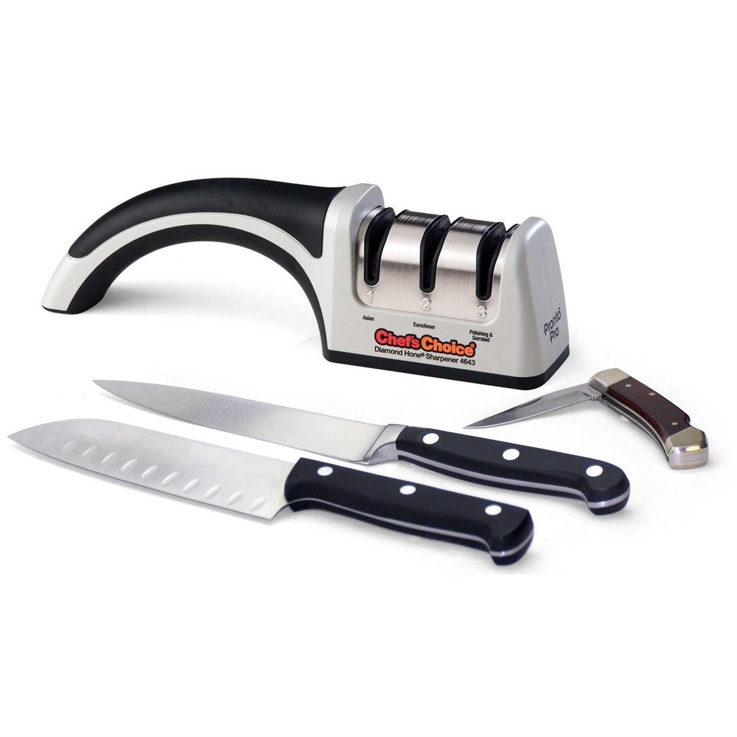 - Sharpen straight edge and serrated knives as well as sports and pockets knives