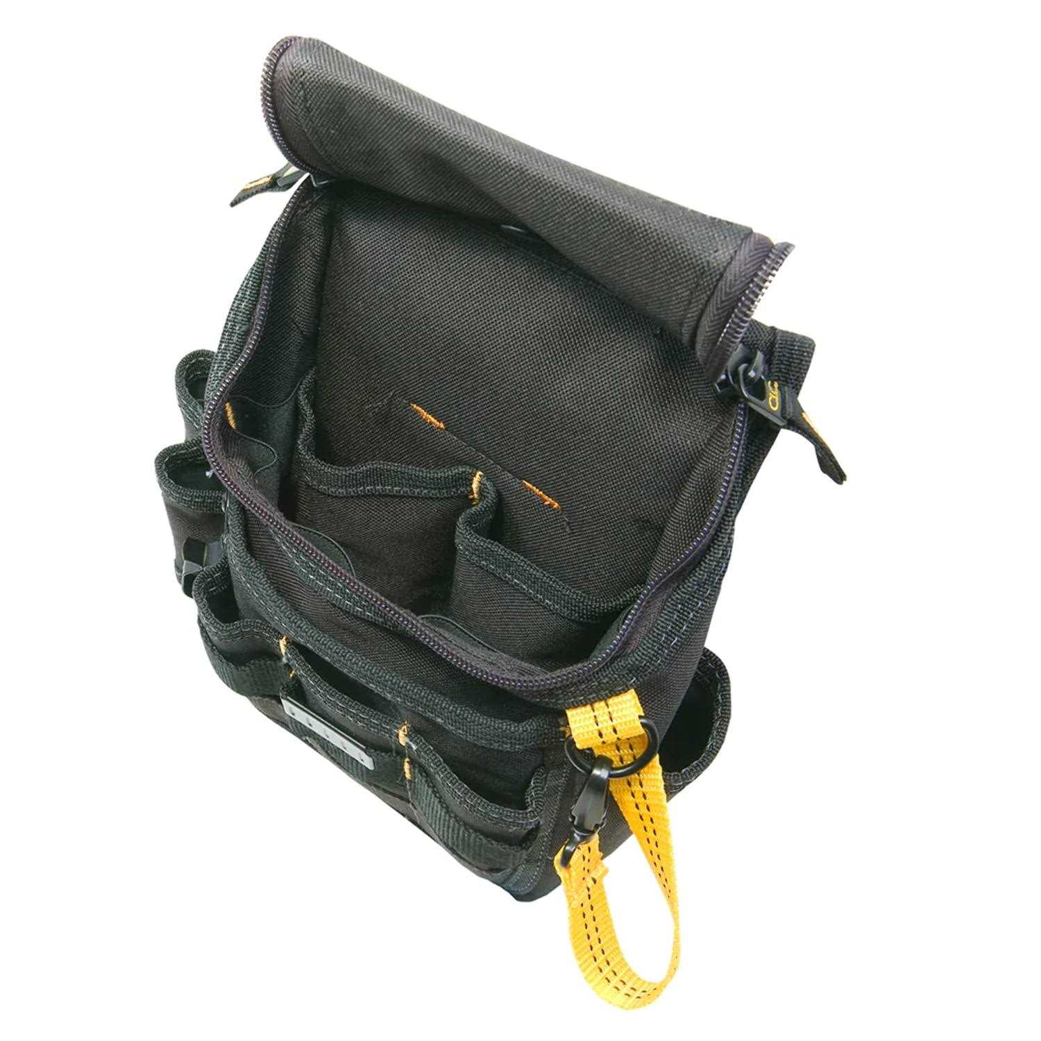 - Double-pull zipper cover secures parts and tools in pouch while able to accommodate long-handled tools