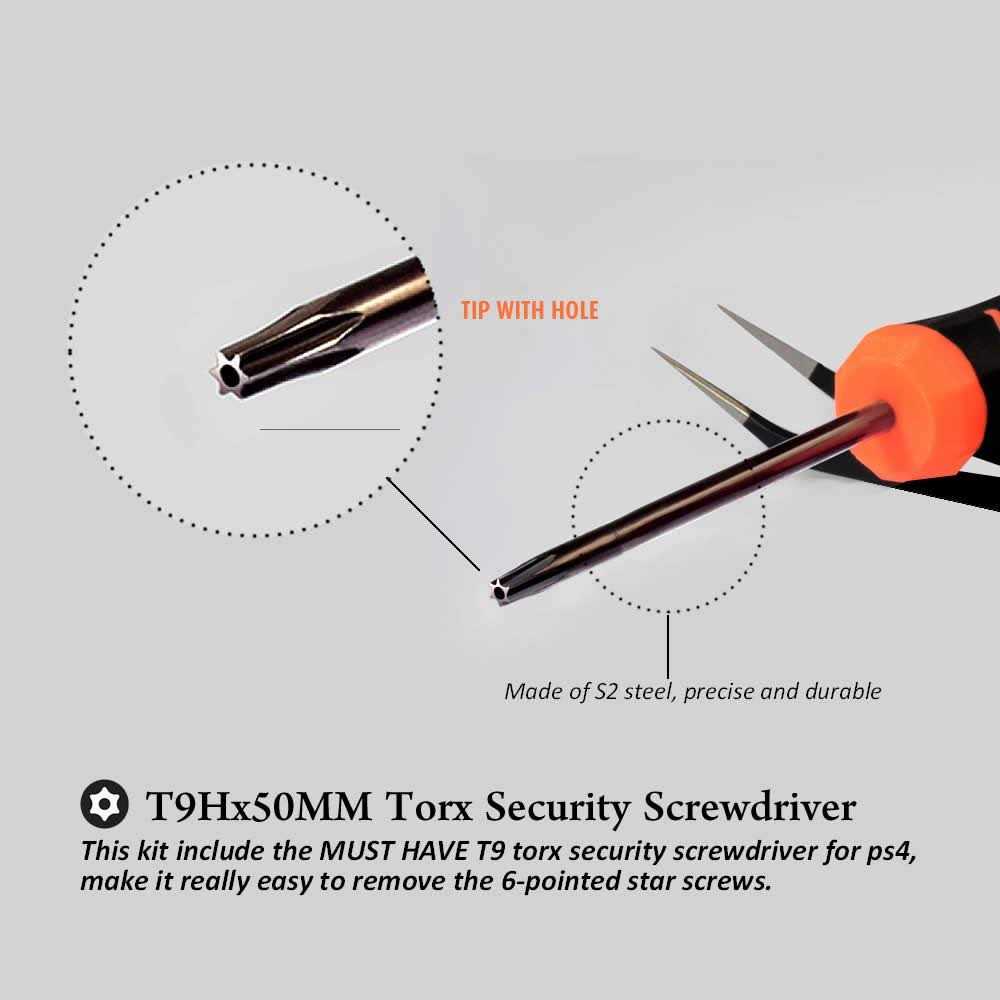 Color: PS4 Repair Kit Features: [COMPLETE SCREWDRIVER SET FOR PS4]: This kit include the MUST HAVE T9 torx security screwdriver for ps4 with PH0 PH1 phillips screwdriver, and PH00 phillips can be used to remove these tiny screws on PS4 controller perfectly. [MAGNETIC SCREWDRIVERS]: These screwdrivers are all magnetic to hold tiny screws,convenient to use. [PS4 CLEANING TOOL KIT]: To open and clean PS4, you’ll also need opening tools with pry bars,tweezer and brush which are all included in this kit, complete and make it easy for cleaning. [DURABLE CONSTRUCTION]: The precision screwdriver bits are made of good S2 steel, specially hardened with heat treatment which is more precise and durable than silver colored CRV bits,high quality for long time use. Ergonomic design, nice screwdrivers. [NON-SKID FLEXIBLE HANDLES]: The handle is made of TPR and PP material which is non-skid with flexible cap, easy and pretty comfortable to grip in hand and convenient to use for different kinds of repairs. Details: EAN: 0797551018560 Package Dimensions: 0.5 x 0.1 x 0.7 inches