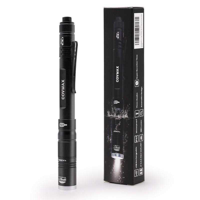 - Handheld Flashlights by COVMAX. Details:Rechargeable Pen Light Flashlight IP67 Waterproof with Pocket Clip.