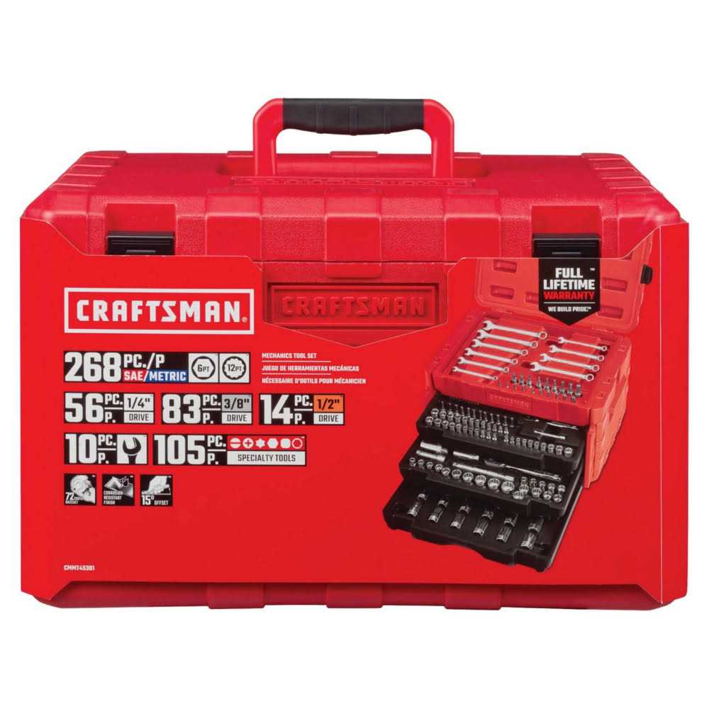 Craftsman 1/4 3/8 and 1/2 in. Drive Metric and SAE 12 Point Mechanic’s Tool Set 268 Pc.
