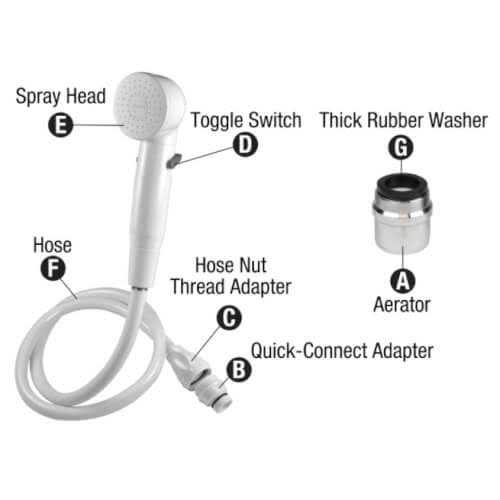 The Danco Easy Spray features a 3-ft hose with a quick-connect aerator adapter to connect with your existing faucet. The Easy Spray includes the dual thread aerator Male 14/16 or Female 55/64 with many different uses. The full spray pattern and flow control help bath your pets toddlers and elderly easier. The easy to use faucet sprayer has a convenient on/off toggle switch for maximum control and allows you to control the water flow from light to full depending on your needs. This bathing tool is a handheld portable sprayer that makes it easy to move from faucet to faucet around the house. The 3-ft hose is the perfect faucet extender when you need extra reach. The handheld sprayer hose easily detaches for storage after use. The faucet sink sprayer can be use with faucets in your kitchen or bathroom sink. Use the Easy Spray today to help with your everyday needs!