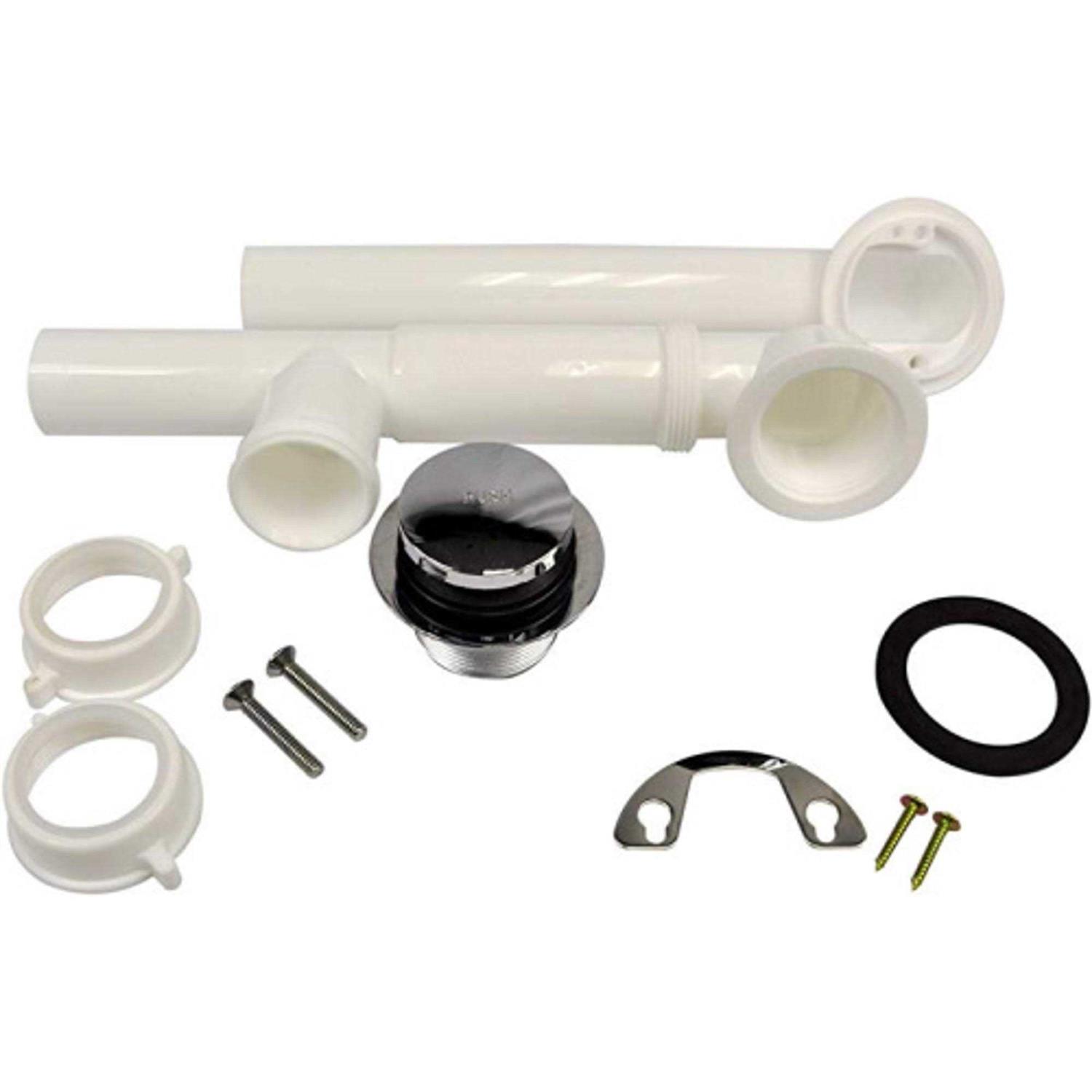 The Danco Chrome Tub Drain Kit is a complete bath drain kit for most standard tubs. It features 1-1/2 in. plastic tubing that provides durability for a long product life. The kit includes all of the necessary parts to replace an existing drain or add a new tub. The drain trim has a touch-toe style with a polished chrome finish that will match existing faucet finishes.