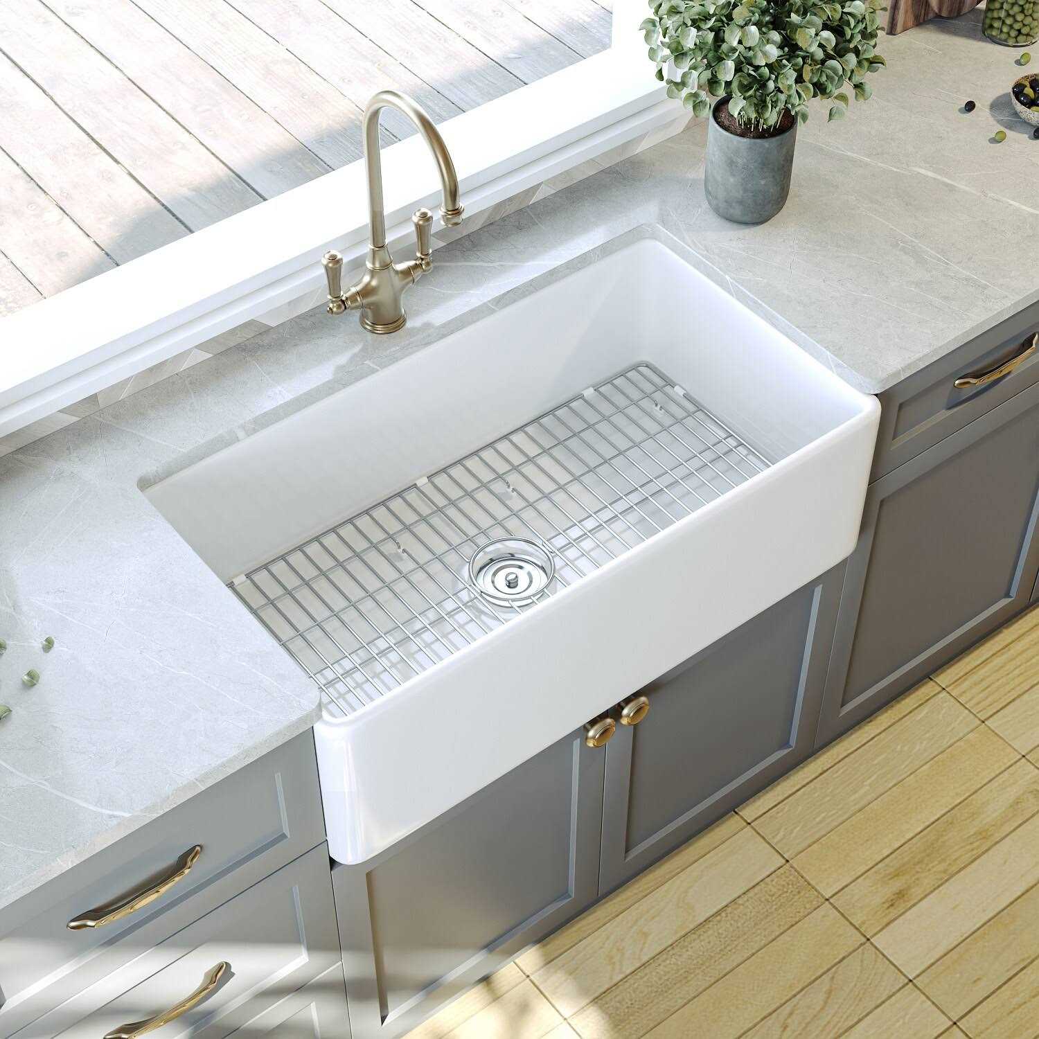 The DeerValley Grove fireclay farmhouse kitchen sink is made of high-fired fireclay, which is solid, durable and resistant to cracks and scratches. The dense structure of fireclay makes it non-porous, which prevents dirt residue and yellowing. This kitchen sink is also resistant to acid and alkali. With its beautiful design and smooth lines, this white farmhouse kitchen sink complements any sophisticated, modern, and warm home style.