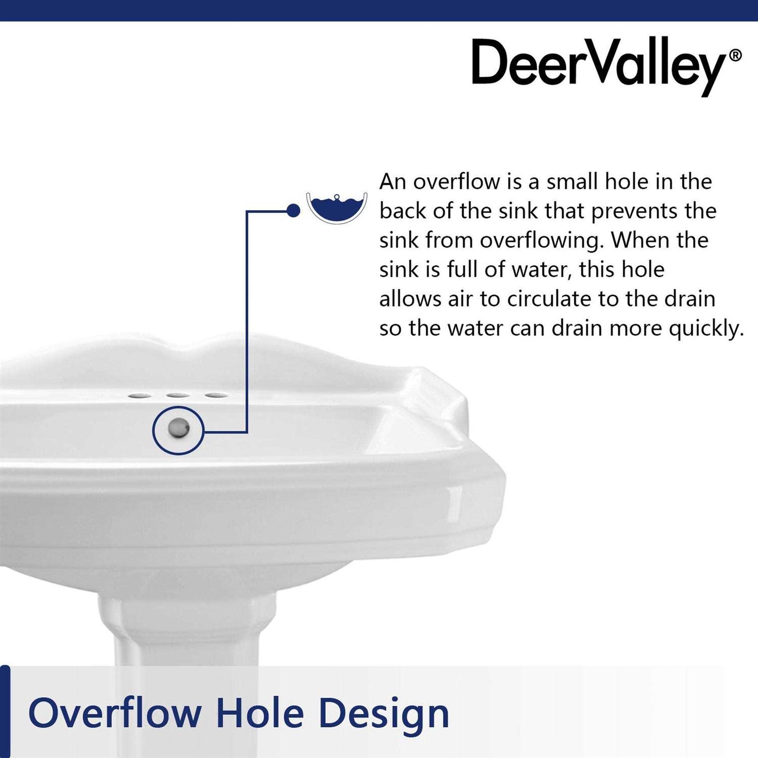 DeerValley DV-1P522 Dynasty 23″ x 19″ White Ceramic Pedestal Bathroom Sink with Overflow
