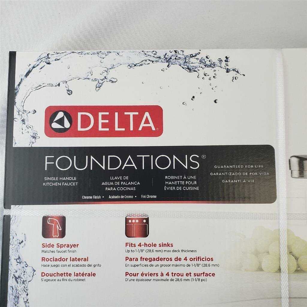 Delta 10901LF Foundations Single Handle Kitchen Faucet, with Side Spray, Chrome