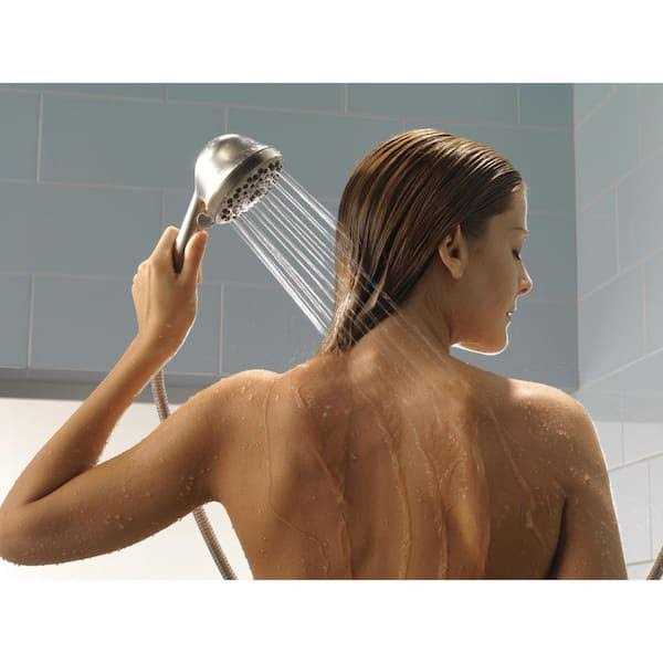 Experience a better shower with the control and flexibility of a Delta hand shower. Great for showering yourself or your loved ones and pets, as well as for keeping your shower and tub clean. While other products may gather unsightly mineral build-up over time, Delta soft rubber Touch-Clean spray holes allow any mineral residue to simply be wiped away for an instantly refreshed look? with no need for soaking or the aid of chemical cleaners. The pause setting gives you ample space for shaving, lathering and other shower tasks, then easily restarts the water with the temperature where you left off. This spray setting helps you conserve water, so you can worry less about depleting your supply of hot water – and you help the environment too. Delta WaterSense labeled faucets, showers and toilets use at least 20% less water than the industry standardsaving you money without compromising performance.