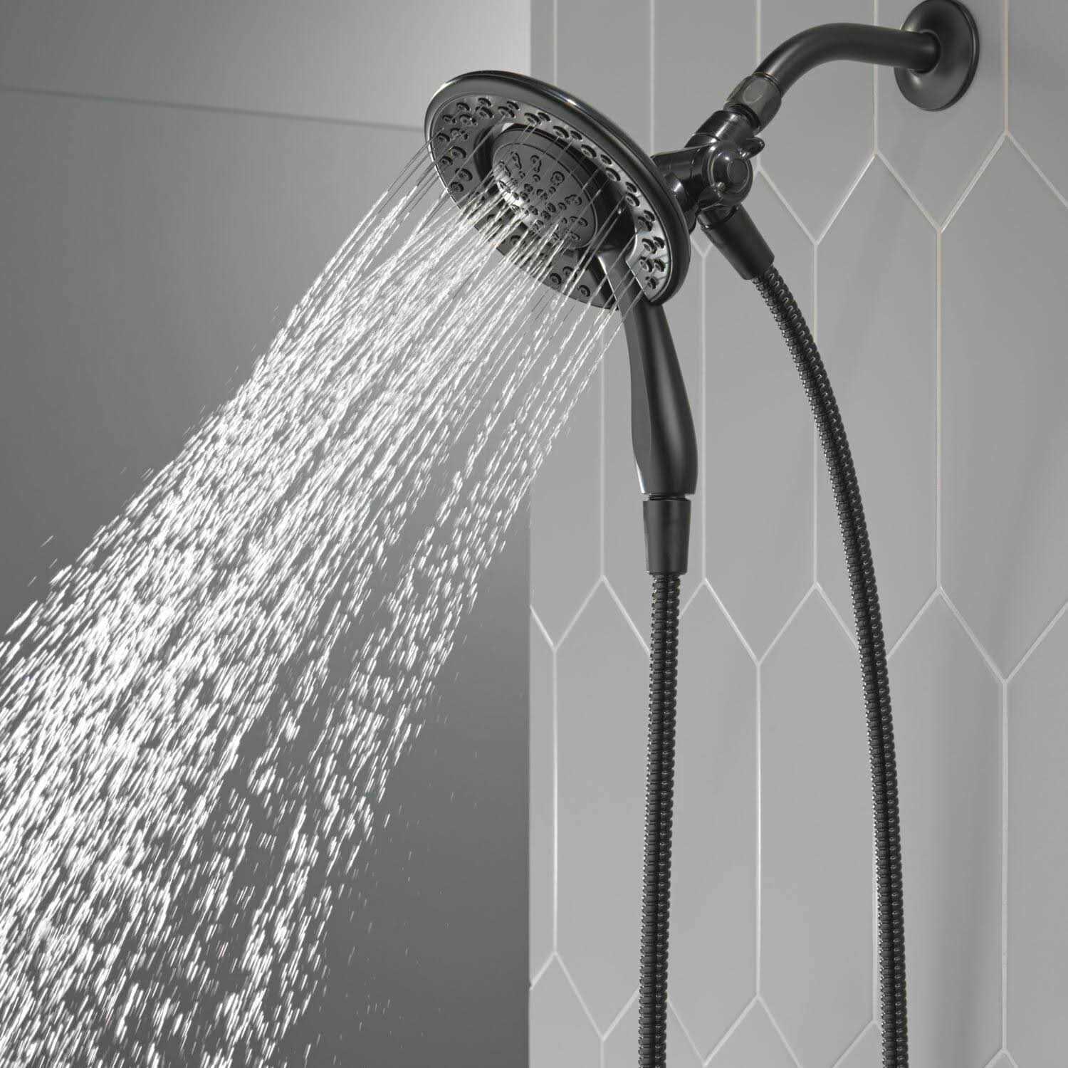Delta This adjustable Multi Function Dual Shower Head In2ition features a detachable hand shower which can be used separately from or simultaneously with the showerhead. This integrated dual-functionality gives you maximum flexibility without sacrificing warmth, as you can choose to have water streaming from the showerhead only, the hand shower only, or both the showerhead and hand shower at once. While other products may gather unsightly mineral build-up over time, Delta soft rubber Touch-Clean spray holes allow any mineral residue to simply be wiped away for an instantly refreshed look – with no need for soaking or the aid of chemical cleaners. The pause setting gives you ample space for shaving, lathering, and other shower tasks, then easily restart the water with the temperature where you left off. This spray setting helps you conserve water, so you can worry less about depleting your supply of hot water – and you help the environment too. Delta WaterSense labelled faucets, showers and toilets use at least 20% less water than the industry standard—saving you money without compromising performance. Create a luxurious shower experience with a Delta hand shower/showerhead combination. Whether you’re remodeling your space or upgrading your existing setup, the hand shower head will give you more flexibility and coverage in a variety of stunning styles.