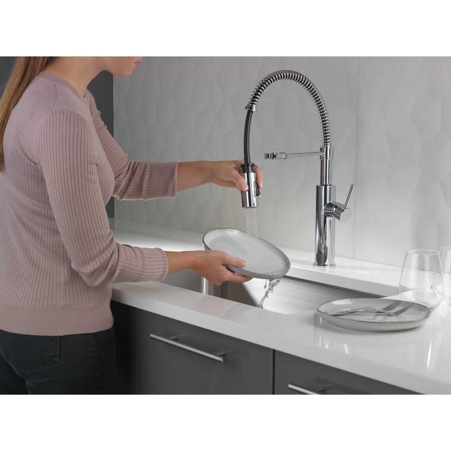 Delta Antoni 18803-DST Single Handle Pull Down Spring Kitchen Faucet – Chrome